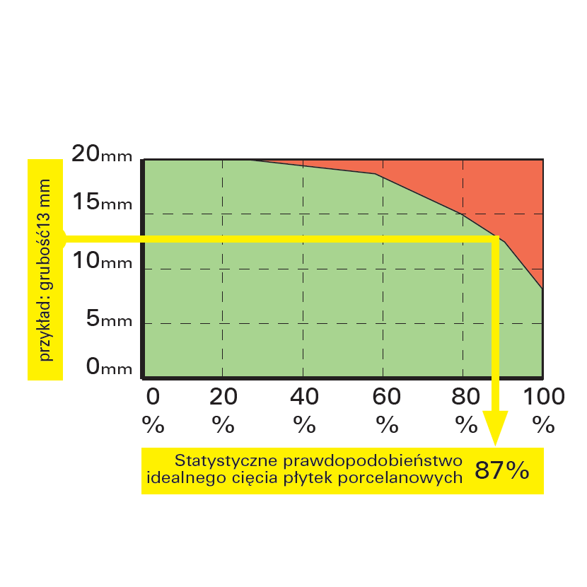 Konstrukcja oparta na aluminiowej podstawie gwarantuje stabilność podczas pracy, a ergonomicznie zaprojektowany uchwyt zwiększa komfort użytkowania. Innowacyjny system prowadzenia kółka tnącego – osadzonego na łożysku wałeczkowym i wspomaganego metalową powłoką przeciwtarciową – zapewnia płynność ruchu, minimalizuje luzy boczne i przedłuża żywotność elementu tnącego. Uchwyt porusza się po wzmocnionej szynie z powłoką antykorozyjną, co dodatkowo podnosi trwałość całej konstrukcji. W przypadku płytek o grubości 13 mm, urządzenie osiąga skuteczność idealnego cięcia na poziomie 87%. Sigma ART-4EN waży 21,1 kg, co zapewnia stabilność przy jednoczesnej możliwości mobilnego użytkowania.