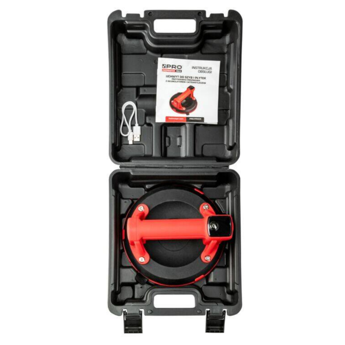 Akumulatorowa przyssawka do płytek i szyb PRO-PR015 to narzędzie przeznaczone do bezpiecznego i wygodnego przenoszenia elementów o gładkiej, płaskiej powierzchni, takich jak płytki, szyby, laminaty czy blachy. Dzięki elektrycznej pompce próżniowej urządzenie zapewnia szybkie i stabilne mocowanie bez potrzeby ręcznego pompowania.