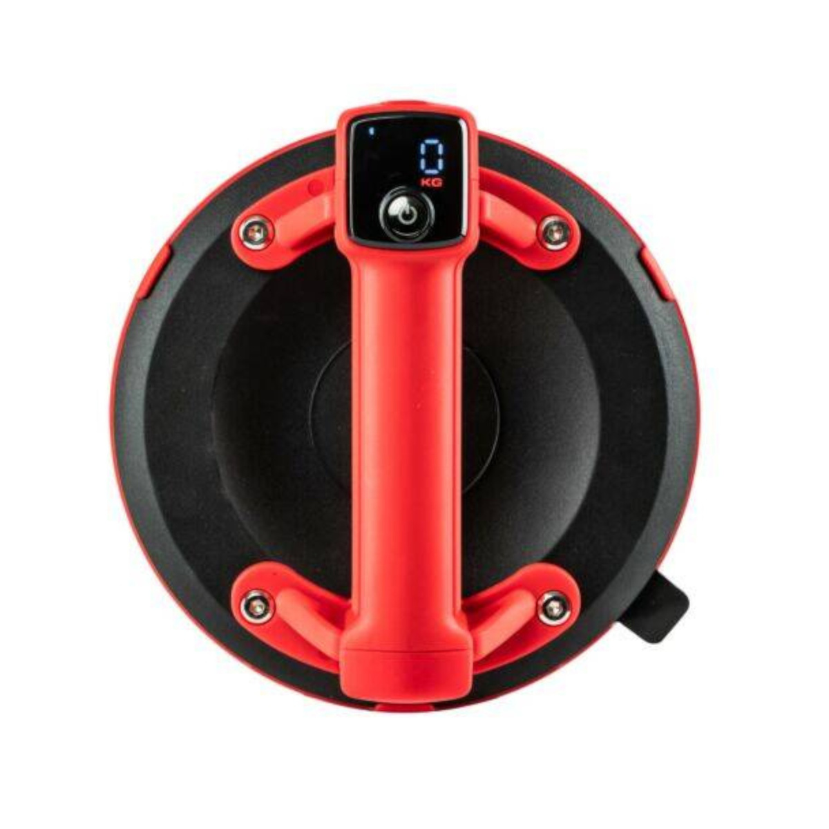 Przyssawka wyposażona została w czytelny wyświetlacz informujący o aktualnym udźwigu oraz w trwałą gumę nitrylową o średnicy 198 mm, która zapewnia pewne trzymanie transportowanego materiału. Obudowa wykonana z lekkiego tworzywa gwarantuje dobrą ergonomię i wytrzymałość. Urządzenie zasilane jest akumulatorem litowo-jonowym, co umożliwia bezprzewodową i wygodną pracę w terenie. Maksymalny udźwig pionowy wynosi aż 150 kg, co czyni przyssawkę odpowiednią do profesjonalnych zastosowań montażowych.