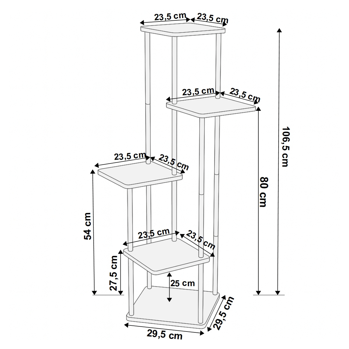 - Wielopoziomowa konstrukcja - pięć poziomów umożliwia efektowną ekspozycję kilku roślin jednocześnie.