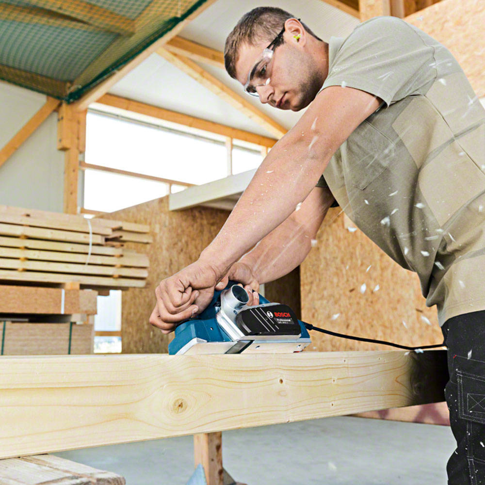 Bosch GHO 26-82 D to narzędzie przeznaczone do zbierania niewielkiej warstwy materiału drzewnego z obrabianego elementu. Strug doskonale sprawdzi się podczas obróbki surowego drewna, nieheblowanych kantówek, desek oraz belek. Odpowiednio zaprojektowana konstrukcja pozwala na komfortową pracę, co przekłada się na lepsze efekty strugania. GHO 26-82 D charakteryzuje się silnikiem o mocy 710W oraz szerokością strugania do 82mm. Takie parametry pozwolą na swobodną pracę przy obróbce materiałów drewnianych.