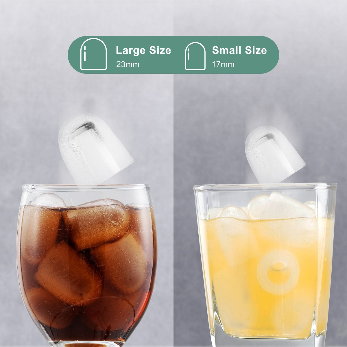 - Dwa rozmiary kostek lodu: 17 mm i 23 mm