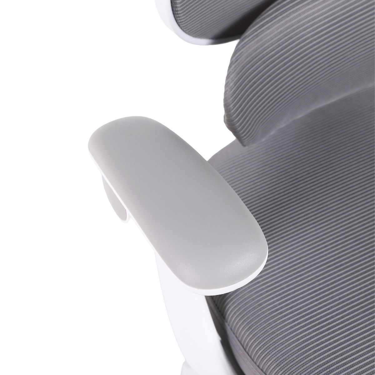 Podłokietniki zapewniają wygodne wsparcie dla przedramion, odciążając barki i ramiona. Ich możliwość odchylenia zwiększa swobodę ruchów i ułatwia dopasowanie fotela do indywidualnych preferencji użytkownika.