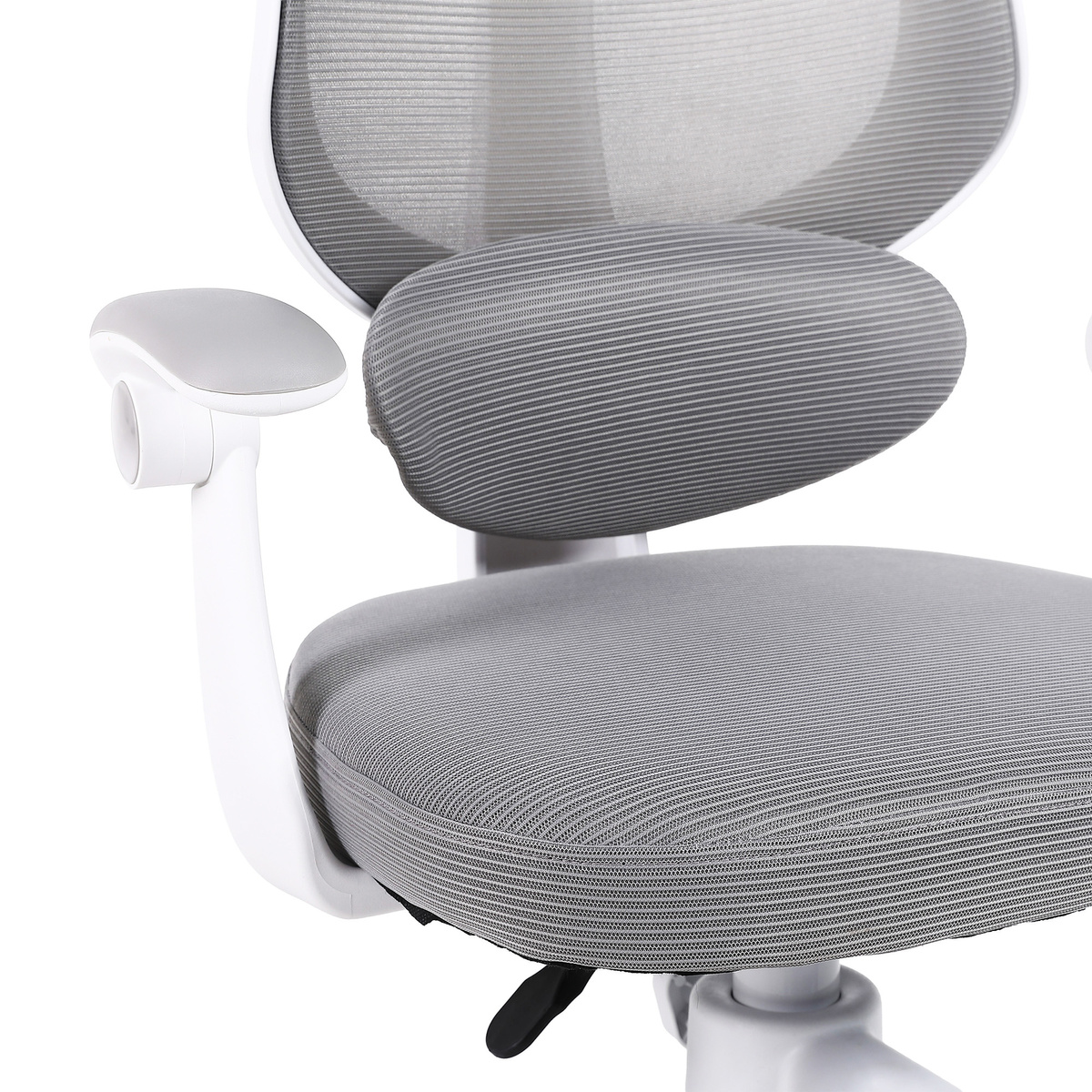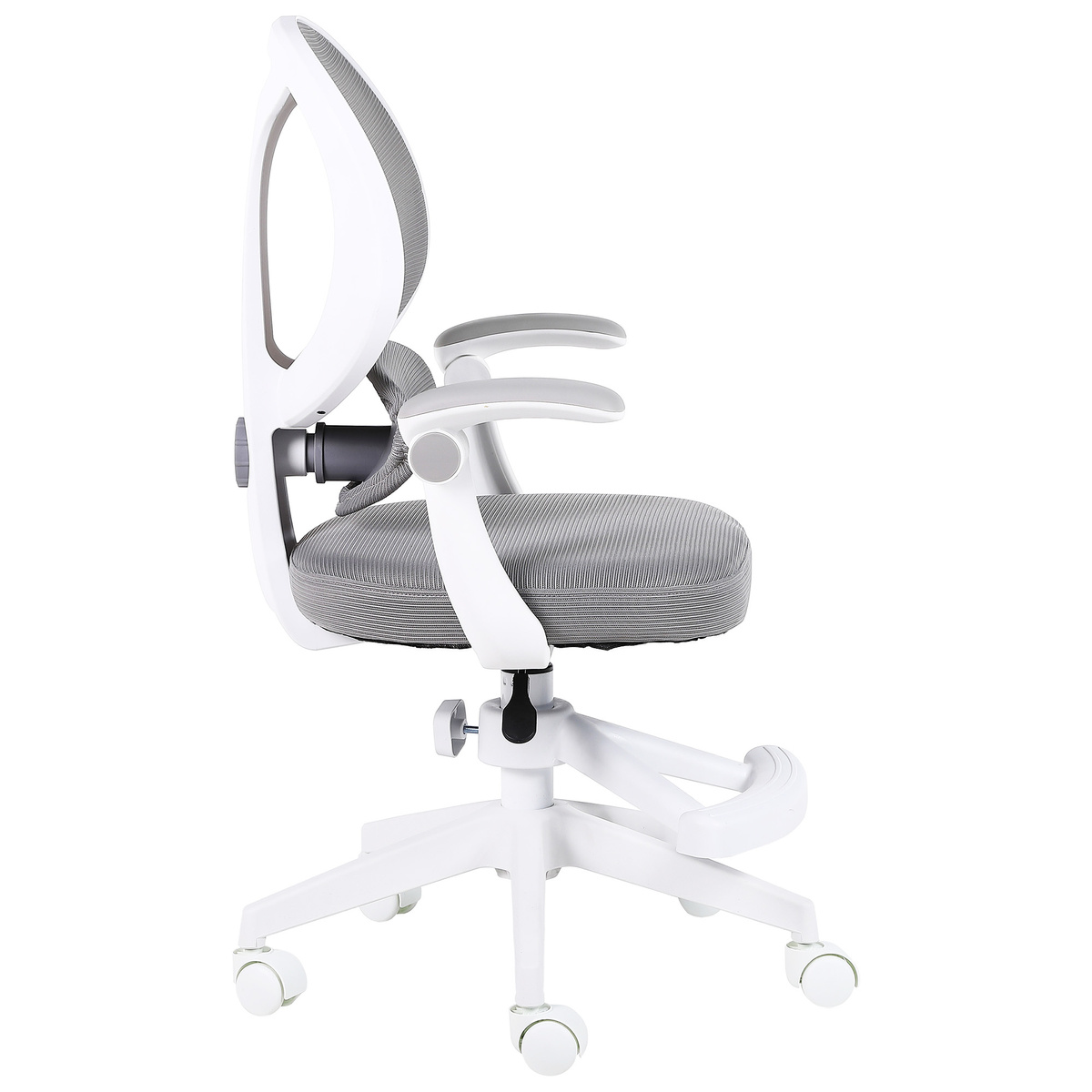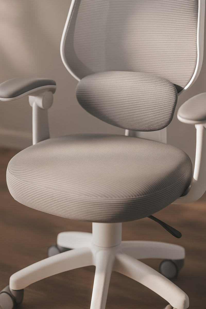 Fotel obrotowy Belivio VIVO w kolorze szarym to ergonomiczne krzesło obrotowe stworzone z myślą o dzieciach i młodzieży. Dzięki regulacji wysokości siedziska, podpory lędźwiowej i odchylanym podłokietnikom łatwo dopasować go do indywidualnych potrzeb rosnącego użytkownika. Wyposażony w wygodny podnóżek, miękką piankę i oddychającą tapicerkę mesh zapewnia komfort nawet podczas wielogodzinnego siedzenia. Przeznaczony dla dzieci o wzroście od 80 do 170 cm, wspiera prawidłową postawę i zdrowy rozwój kręgosłupa.
