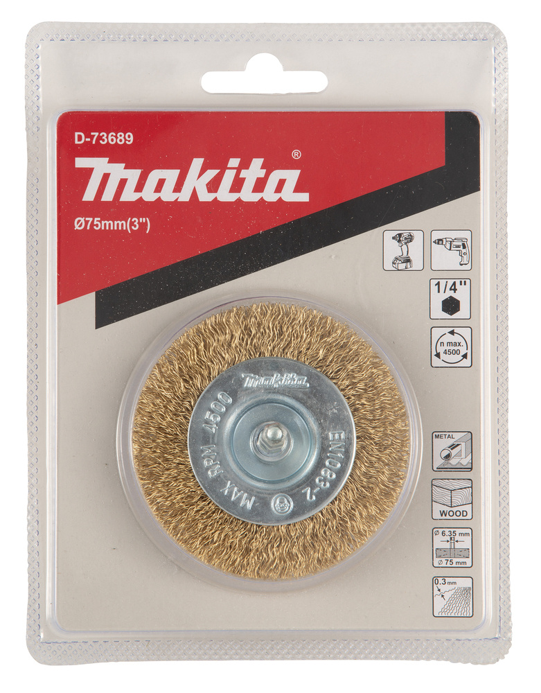 Szczotka tarczowa druciana Makita D-73689 to praktyczne akcesorium przeznaczone do czyszczenia, gratowania oraz usuwania rdzy z powierzchni metalowych i drewnianych. Dzięki swojej konstrukcji i zastosowaniu falistego drutu mosiężnego o średnicy 0,3 mm, narzędzie skutecznie usuwa zanieczyszczenia bez nadmiernego uszkadzania materiału.