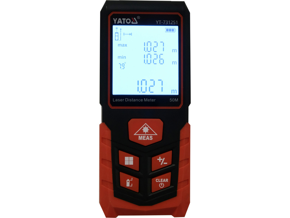 Dalmierz laserowy Yato YT-731251 to kompaktowe i precyzyjne urządzenie pomiarowe, przeznaczone do szybkiego wykonywania pomiarów odległości, powierzchni oraz kubatury w zakresie od 0,05 do 50 metrów. Doskonale sprawdza się w pomiarach wewnątrz pomieszczeń, a jego zaawansowane funkcje pozwalają na dokładne określenie parametrów przestrzennych nawet w trudno dostępnych miejscach. Urządzenie obsługuje różne tryby pomiarowe, w tym pomiary pośrednie bazujące na twierdzeniu Pitagorasa oraz ciągły pomiar kąta nachylenia, co znacząco poszerza jego zastosowanie.