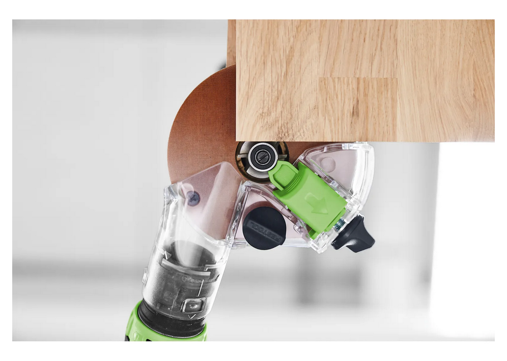 - Czysta praca – osłona ssąca z hamulcem łożyska kulkowego i przyłącze do odsysania pyłu