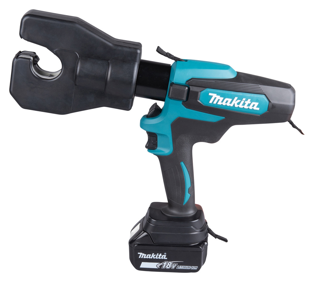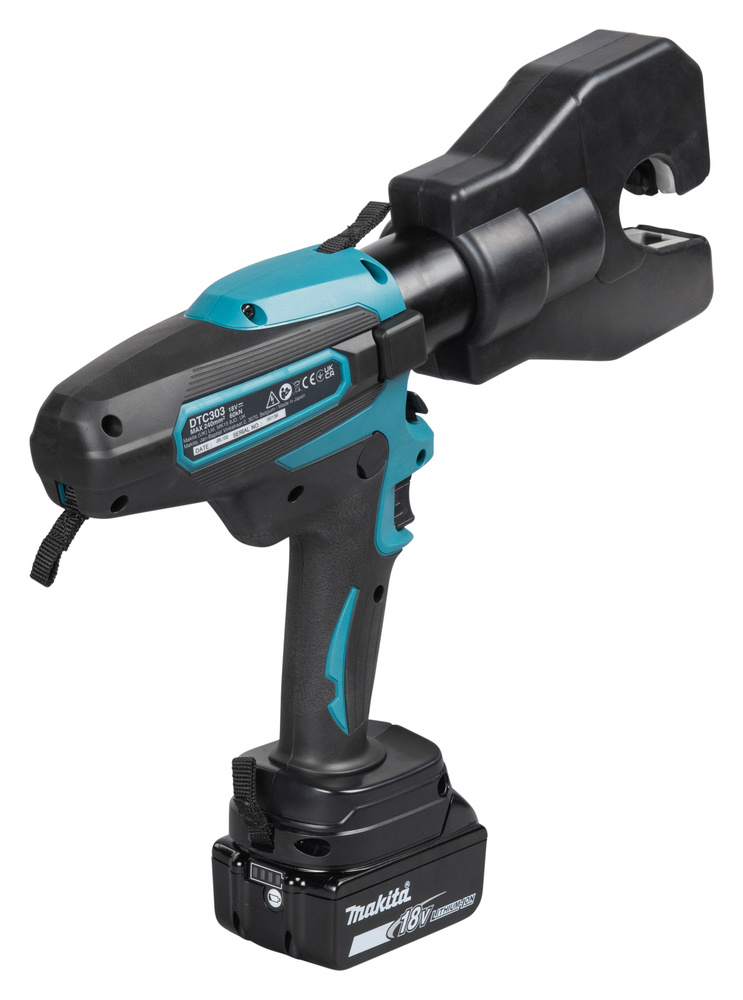 Akumulatorowa zaciskarka do kabli Makita DTC303ZK została zaprojektowana do intensywnej pracy z przewodami o dużej średnicy. Narzędzie zasilane jest akumulatorem 18 V w systemie LXT®, co zapewnia mobilność i niezależność od źródeł zasilania sieciowego. Model ten osiąga siłę zacisku do 60 kN i został wyposażony w mechanizm automatycznego powrotu tłoka po zakończeniu operacji, co przekłada się na wyższą wydajność i komfort pracy.