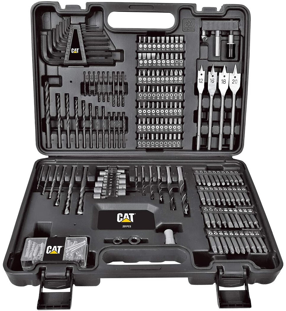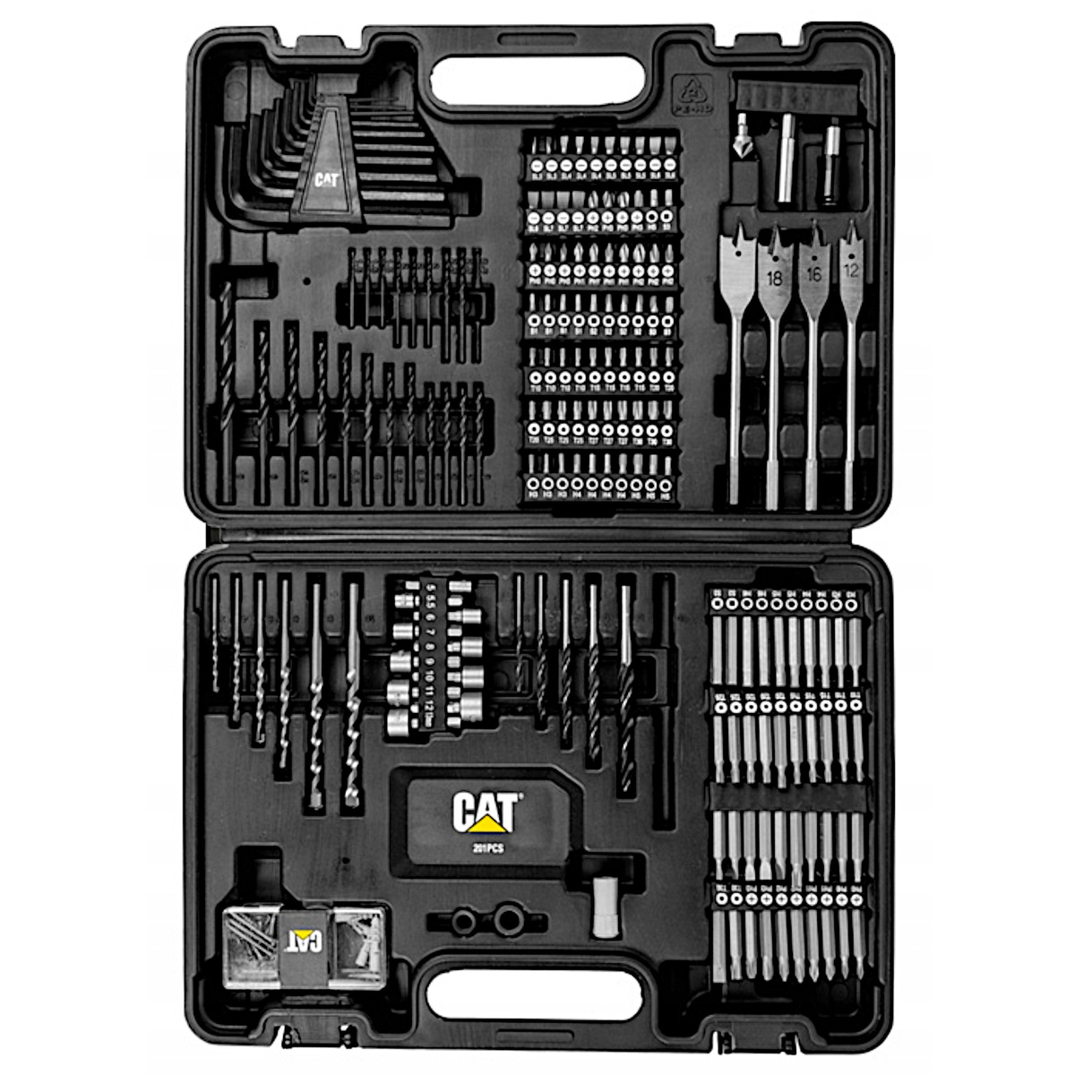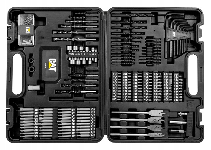 Zestaw akcesoriów CAT DA01903 to praktyczny komplet 201 elementów, zaprojektowany z myślą o uniwersalnym zastosowaniu w pracach domowych, warsztatowych i budowlanych. Zawiera szeroką gamę wierteł, bitów, końcówek wkrętakowych i dodatkowych akcesoriów, dzięki czemu doskonale sprawdzi się przy wierceniu w metalu, drewnie, betonie oraz przy montażu i demontażu różnych elementów. Marka CAT, znana z wysokiej trwałości i niezawodności, gwarantuje solidność wykonania oraz dopasowanie akcesoriów do większości popularnych wiertarek.