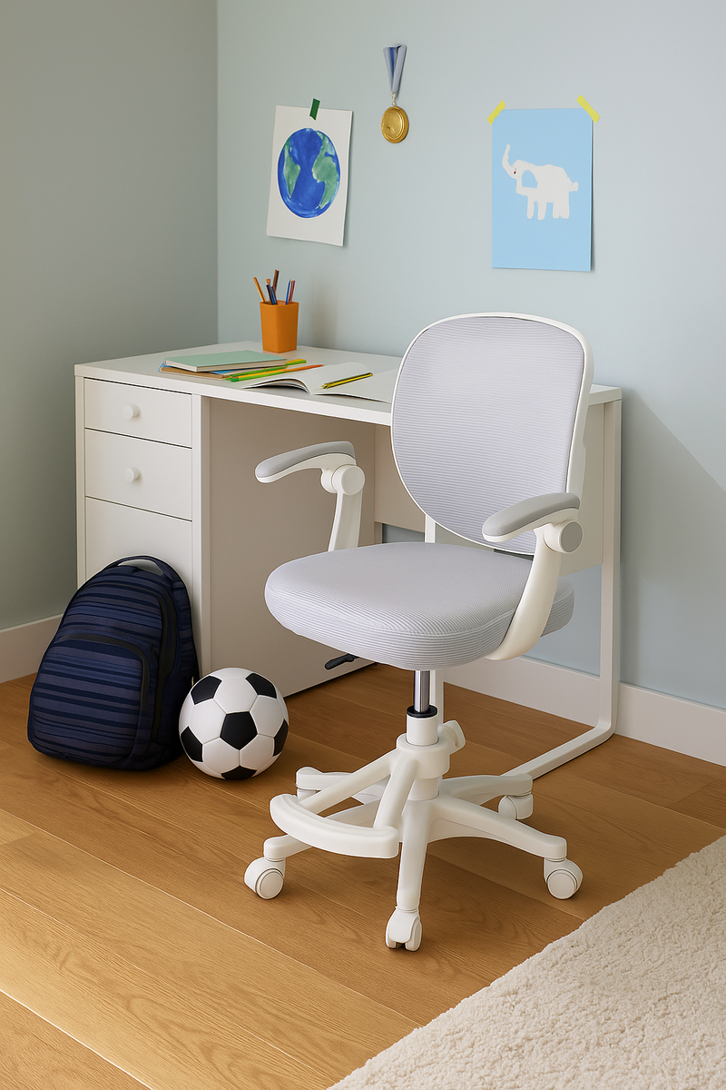 Szary fotel ELMO to przemyślane połączenie nowoczesnej estetyki i funkcjonalnych rozwiązań, które wspierają dziecko podczas nauki, zabawy oraz odpoczynku. Ergonomiczna konstrukcja i dbałość o detale sprawiają, że to idealne siedzisko do pokoju dziecięcego lub młodzieżowego.