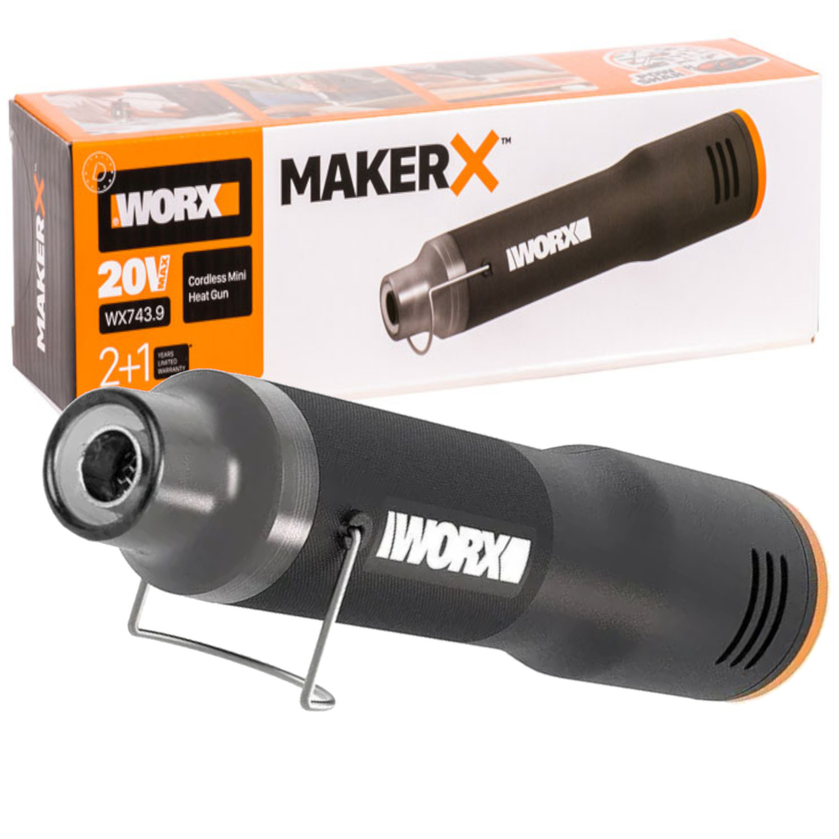 Mini opalarka Worx MakerX WX743.9 została zaprojektowana do prac hobbystycznych i modelarskich, w których wymagana jest dokładność i pełna kontrola nad temperaturą. Urządzenie osiąga temperaturę do 260 °C w ciągu kilku sekund, co sprawia, że doskonale sprawdza się przy suszeniu farb i klejów, obkurczaniu koszulek termokurczliwych, wytłaczaniu czy rozmrażaniu drobnych elementów. Dzięki wąskiej dyszy strumień ciepła jest kierowany precyzyjnie w miejsce pracy, a kompaktowa konstrukcja i niska waga (210 g) pozwalają na wygodną obsługę nawet w najbardziej wymagających projektach. Miniopalarka jest częścią systemu MakerX i do działania wymaga koncentratora MakerX Control Hub (sprzedawany osobno). Urządzenie jest także zgodne z akumulatorami 20V z serii Worx PowerShare.