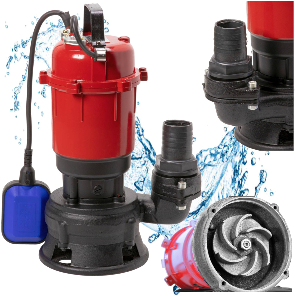 - Wyłącznik pływakowy - Steruje pracą pompy w zależności od poziomu wody; wykonany z trwałych materiałów i wyposażony w bezpieczny przewód H07RN-F.