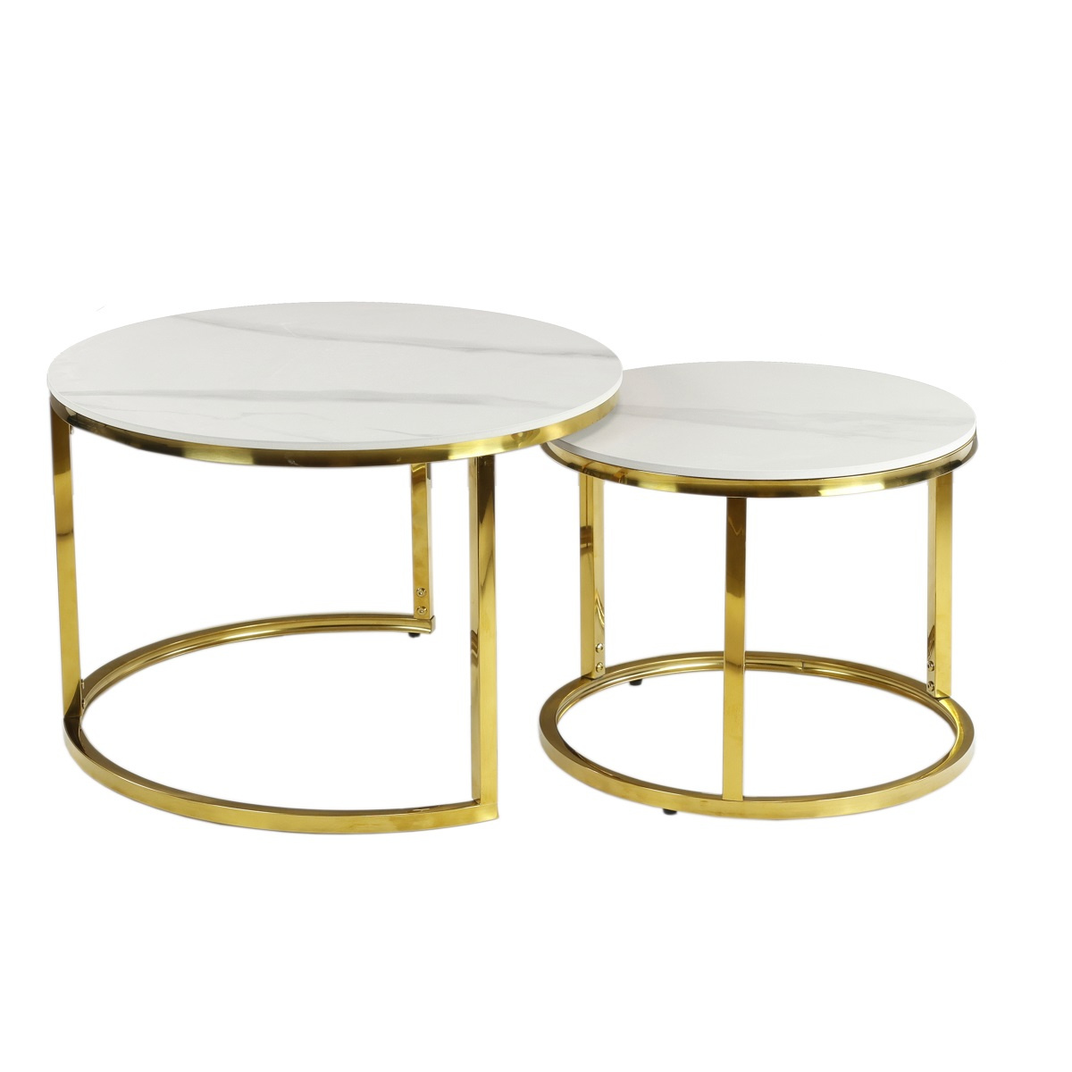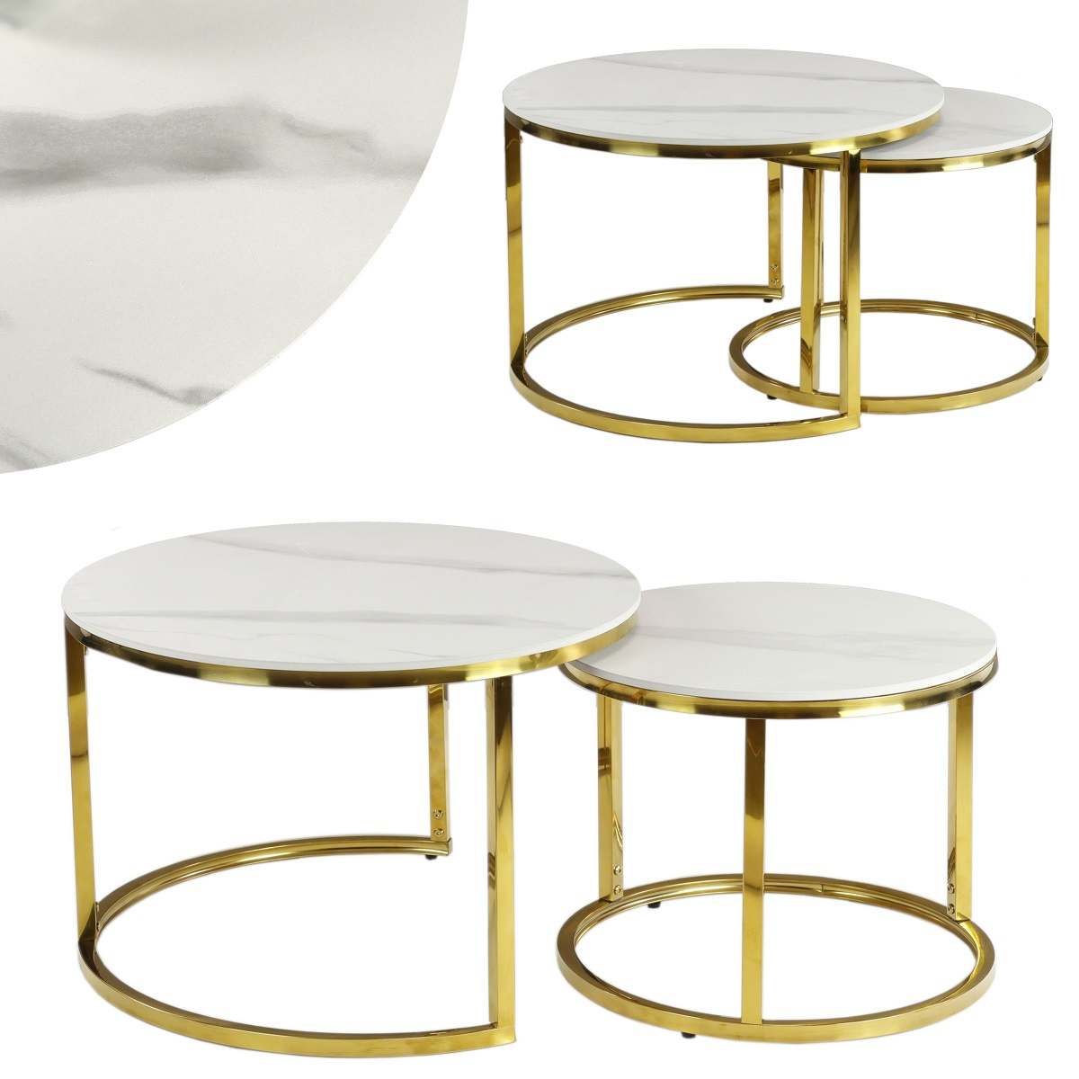 Zestaw stolików Belivio AURORA GOLD biały marmur