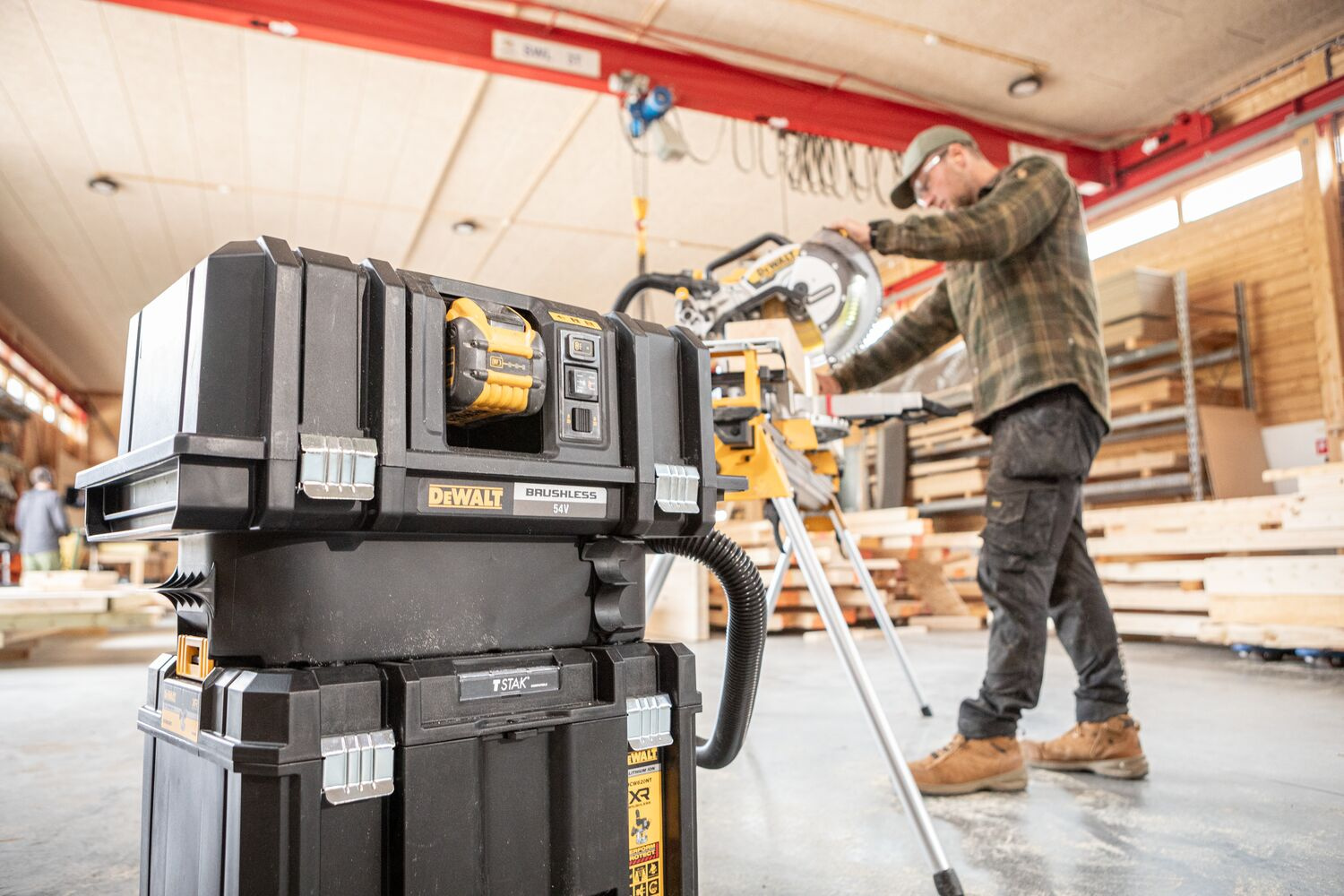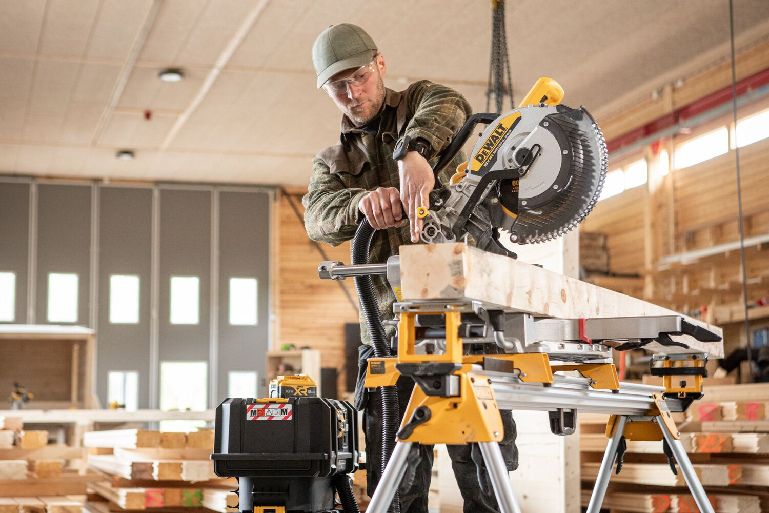 Konstrukcja ukośnicy została oparta na solidnej podstawie, co zapewnia stabilność i trwałość. Urządzenie jest kompatybilne z systemem odciągu pyłu AirLock, co pozwala utrzymać czystość w miejscu pracy. Model DCS782N obsługuje także technologię Wireless Tool Control, umożliwiającą bezprzewodowe parowanie z kompatybilnymi odciągami pyłu.