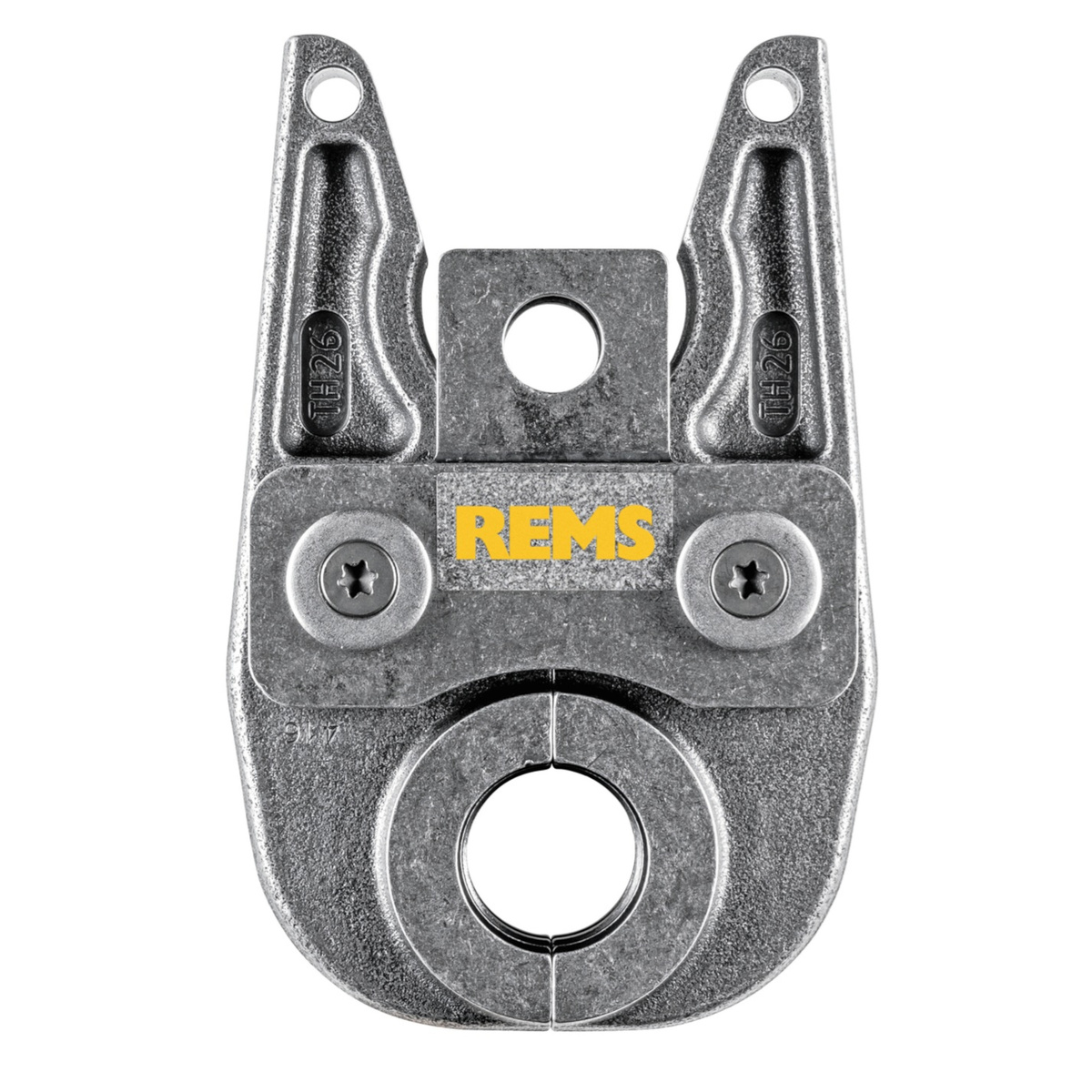 Cęgi zaciskowe TH26 Rems 570475 to szczęki do zaprasowywania złączek w profilu TH w rozmiarze 26 mm. Wykonane z kutej, ciągliwo-twardej, odpowiednio hartowanej stali specjalnej, dzięki czemu zapewniają wysoką obciążalność i powtarzalny efekt zacisku. Kontur posiada wytłoczone oznaczenie, które po zaprasowaniu pozostawia trwały znak na kształtce – ułatwia to potwierdzenie użycia właściwych cęgów. Kompatybilne z wszystkimi prasami REMS o sile posuwu 32 kN oraz odpowiednimi zaciskarkami innych producentów o tej samej klasie siły.