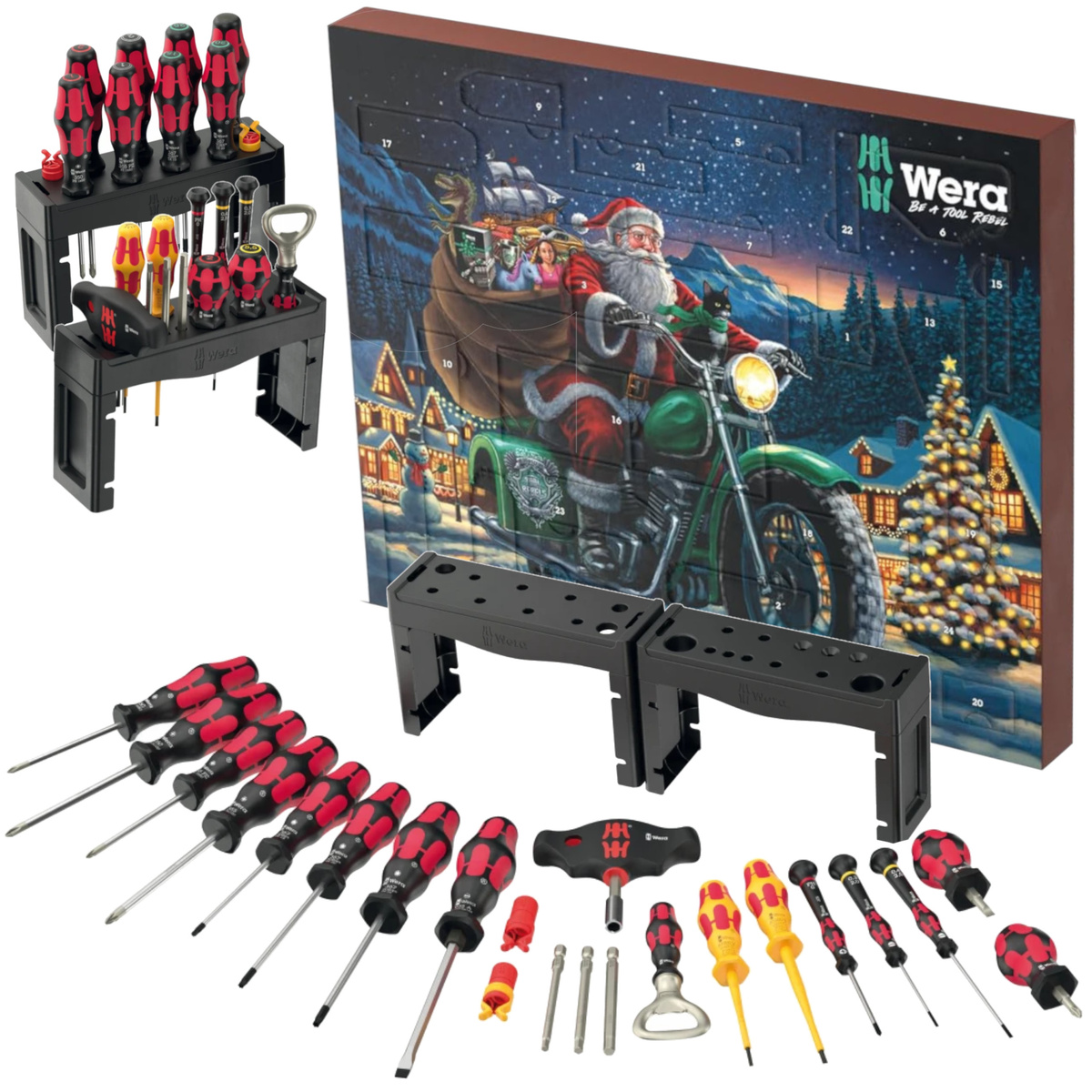 Kalendarz adwentowy Wera 05136610001 2025 28 el. to praktyczny zestaw narzędzi w formie limitowanej edycji świątecznej, skrywający 28 elementów do codziennej pracy w warsztacie, domu czy przy precyzyjnych naprawach. Zawiera szeroki wybór wkrętaków, w tym modele izolowane VDE, krótkie Stubby, precyzyjne Kraftform Micro oraz narzędzia do pobijania. W komplecie znajdują się także chwytaki do wkrętów, rękojeść poprzeczna z uchwytem na bity oraz wydłużone końcówki sześciokątne Hex-Plus.