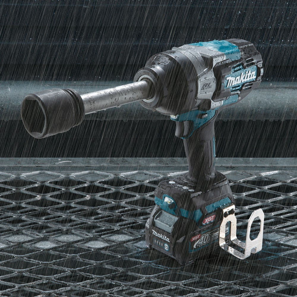 Klucz udarowy Makita TW011GZ to bezprzewodowy klucz udarowy akumulatorowy z nowoczesnym silnikiem bezszczotkowym, do ciężkich zastosowań. Dzięki zastosowaniu technologii XPT, urządzenie posiada podwyższoną odporność na pył oraz wilgoć. Klucz wyposażony został w wydłużony trzpień umożliwiający prace w trudno dostępnych miejscach. Maksymalny moment 1500 Nm i 4-stopniowa kontrola prędkości zapewniają, że klucz radzi sobie z wymagającymi zadaniami. Ergonomiczny uchwyt i tryb pełnej prędkości minimalizują zmęczenie dłoni.