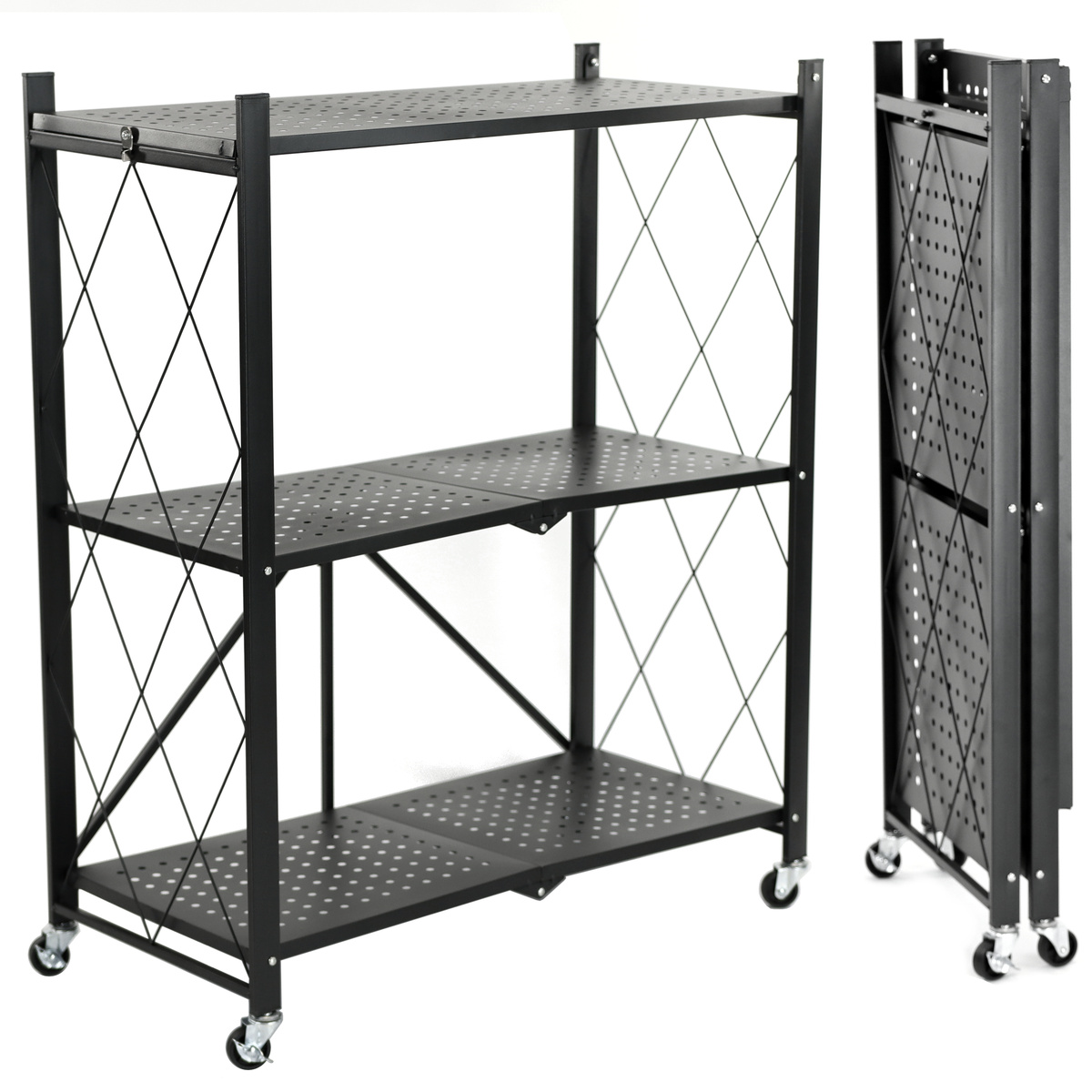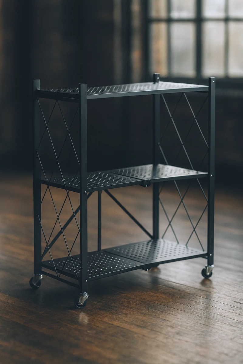 • Funkcjonalny i składany regał Belivio SIMON Black 3-poziomowy