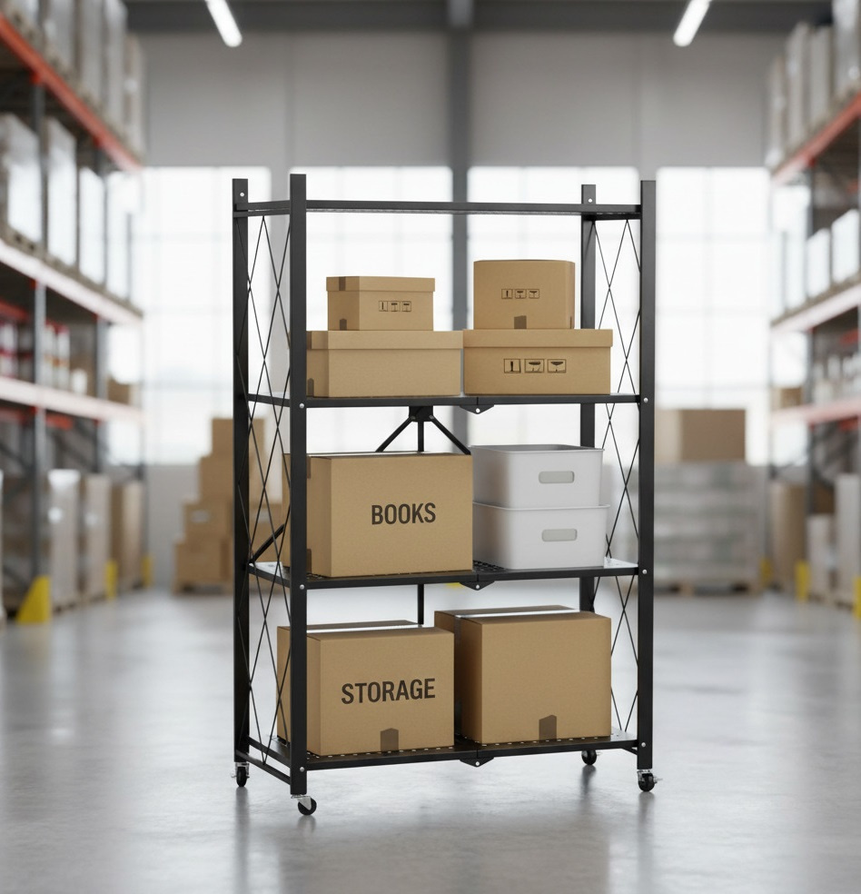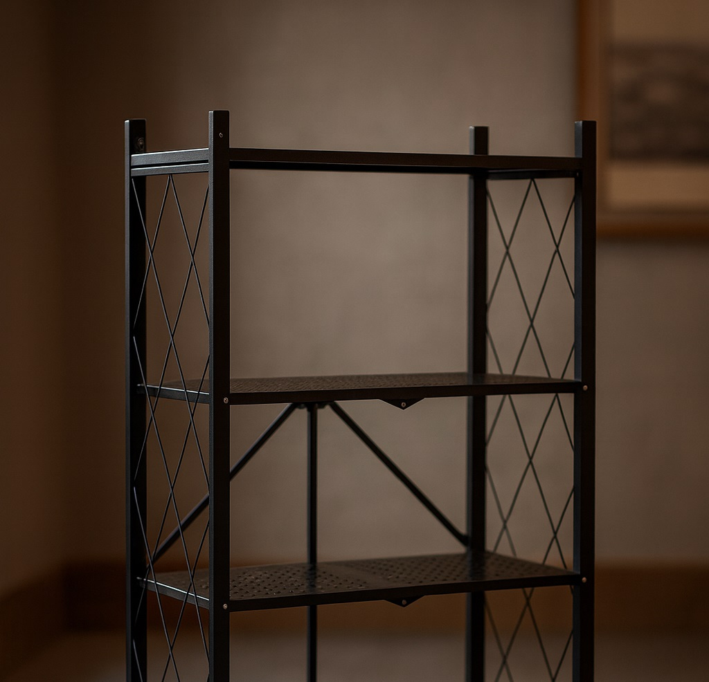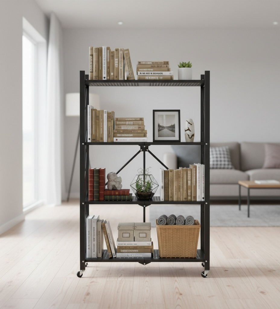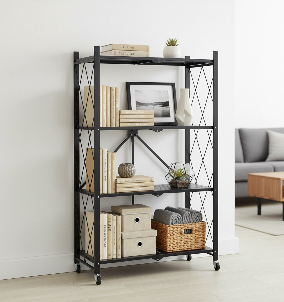 - Funkcjonalny i składany regał Belivio SIMON Black 4-poziomowy