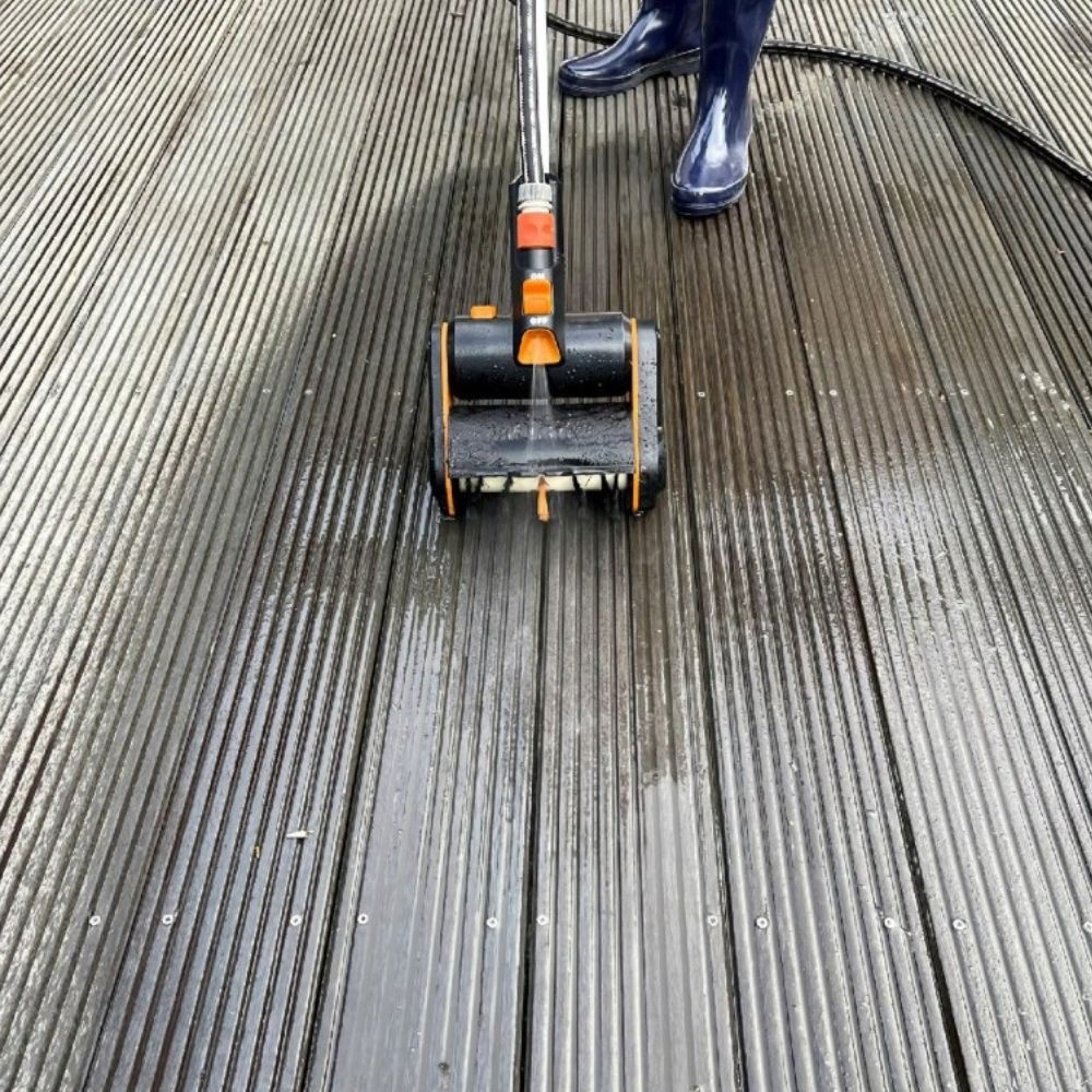 - Funkcja 4w1 pozwala na czyszczenie kamienia, drewna, fug oraz usuwanie chwastów, co czyni urządzenie uniwersalnym narzędziem do prac w ogrodzie i wokół domu.