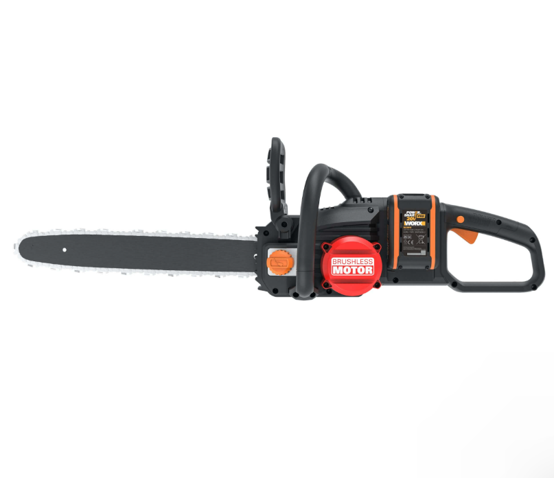 • Worx WG385E to akumulatorowa pilarka łańcuchowa napędzana bezszczotkowym silnikiem 40 V, który zapewnia moc zbliżoną do modeli spalinowych.