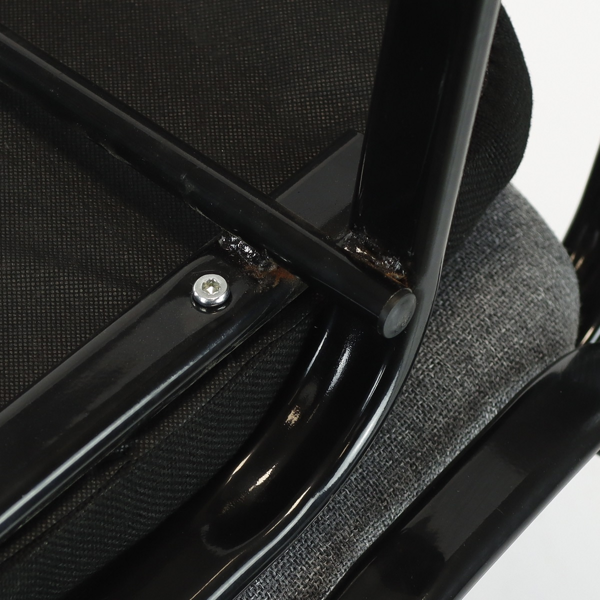 Krzesła dostępne są w dwóch kolorach tapicerki: czarne i szare. Posiadają metalowy stelaż, malowany proszkowo. Są stabilne, wygodne i wytrzymałe.