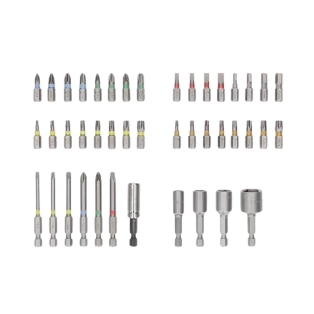 - Bity w zestawie są oznaczone kolorami, co ułatwia szybki wybór odpowiedniego narzędzia podczas pracy.