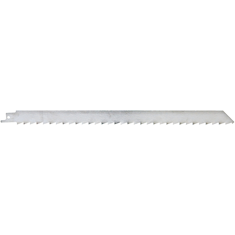 Brzeszczot Makita B-23248 to wysokiej jakości narzędzie przeznaczone do pracy z pilarkami szablastymi wyposażonymi w uchwyt typu S. Dzięki długości całkowitej 300 mm oraz roboczej 279 mm, model ten doskonale sprawdza się przy cięciu wymagających materiałów, takich jak zamrożone produkty spożywcze, bloki lodu, mięso z kośćmi czy poroże. Wykonany ze stali nierdzewnej brzeszczot charakteryzuje się trwałością oraz odpornością na korozję. Ostrze o grubości 1,2 mm i uzębieniu 6 TPI (zębów na cal) umożliwia precyzyjne cięcie w zakresie od 10 do 250 mm grubości, co czyni go idealnym rozwiązaniem zarówno do zastosowań profesjonalnych, jak i specjalistycznych w przetwórstwie spożywczym.