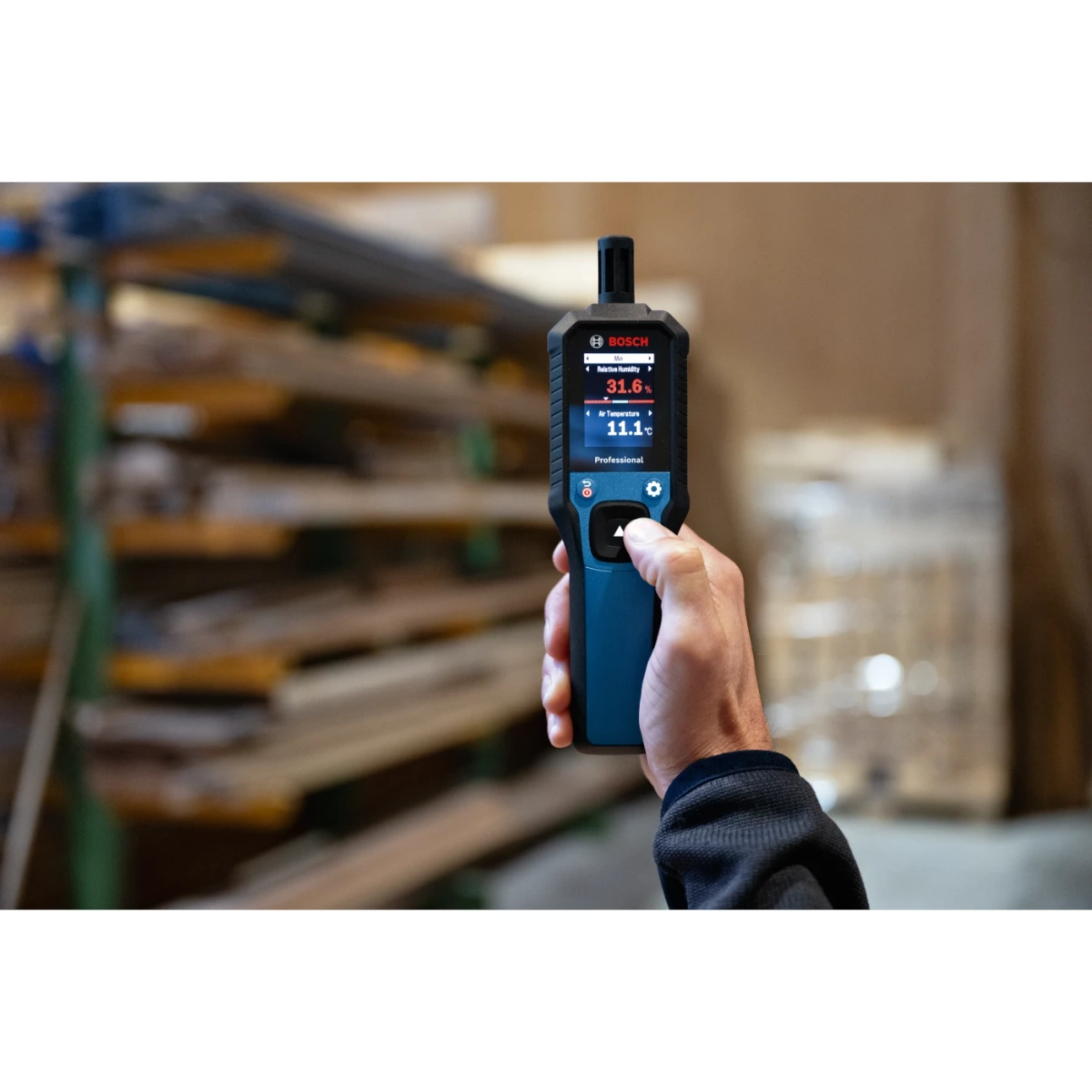 Wilgotnościomierz Bosch GDH 1-17 0601078400 to profesjonalne narzędzie pomiarowe zaprojektowane z myślą o precyzyjnym monitorowaniu parametrów środowiskowych, zarówno w pomieszczeniach, jak i na placach budowy. Urządzenie umożliwia równoczesny odczyt pięciu kluczowych zmiennych: temperatury powietrza, wilgotności względnej, punktu rosy, temperatury mokrego termometru oraz wilgotności bezwzględnej. Czytelny, kolorowy wyświetlacz TFT LCD ułatwia interpretację wyników w różnych warunkach oświetleniowych.