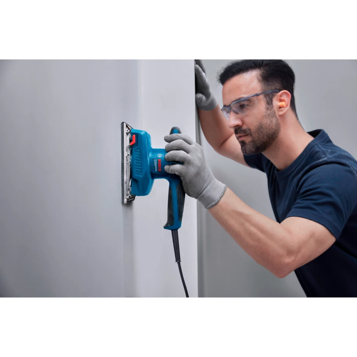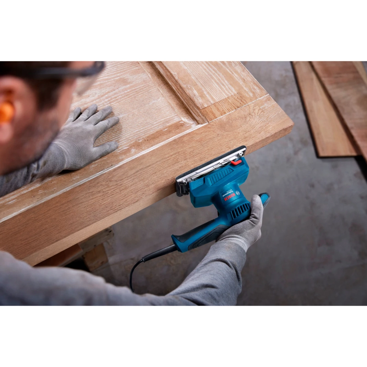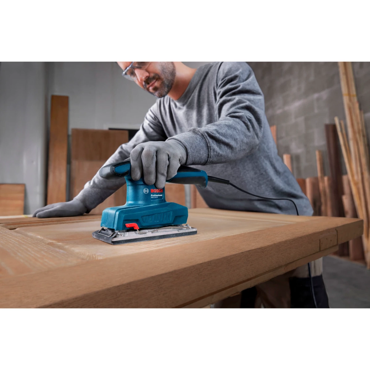 Szlifierka oscylacyjna Bosch GSS 20-18 A 0601070101 to wydajne i niezawodne elektronarzędzie przeznaczone do precyzyjnej obróbki powierzchni drewnianych oraz materiałów drewnopochodnych. Dzięki wydajnemu silnikowi o mocy 200 W i prędkości oscylacyjnej do 24 000 ruchów na minutę zapewnia równomierne szlifowanie oraz wysoką efektywność pracy. Urządzenie zostało zaprojektowane z myślą o ergonomii – dobrze wyważona konstrukcja ułatwia manewrowanie w każdym kierunku, a antypoślizgowa rękojeść gwarantuje pewny chwyt i pełną kontrolę nad narzędziem, także podczas długotrwałej pracy. Niski poziom drgań (3,0 m/s²) znacząco redukuje zmęczenie, co czyni szlifierkę idealnym wyborem dla profesjonalistów oraz wymagających majsterkowiczów. Dodatkowo skuteczny system odpylania z woreczkiem na pył zwiększa czystość stanowiska pracy, a odporny na pył mechanizm wydłuża żywotność urządzenia. Bosch GSS 20-18 A sprawdzi się zarówno przy przygotowaniu dużych powierzchni pod malowanie, jak i przy wygładzaniu spoin czy wykańczaniu krawędzi.