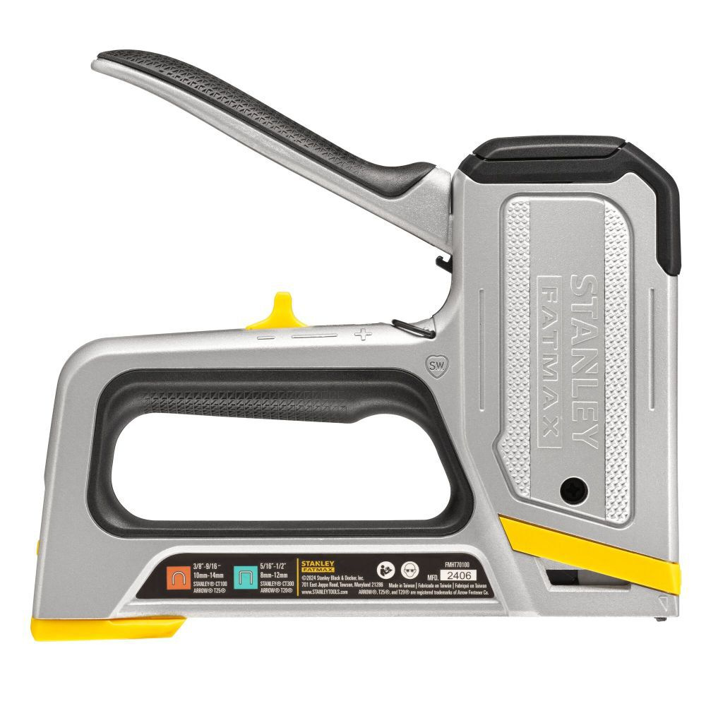Zszywacz do kabli Stanley FMHT70100-0 to solidne narzędzie przeznaczone do profesjonalnego mocowania kabli, szczególnie przydatne przy instalacjach alarmowych i telefonicznych. Dzięki konstrukcji 2 w 1, model ten obsługuje zszywki typu CT100 oraz CT300, co zapewnia elastyczność w pracy z różnymi średnicami przewodów. Aluminiowa obudowa gwarantuje trwałość, a ergonomiczny, miękki uchwyt zwiększa komfort podczas długotrwałego użytkowania.