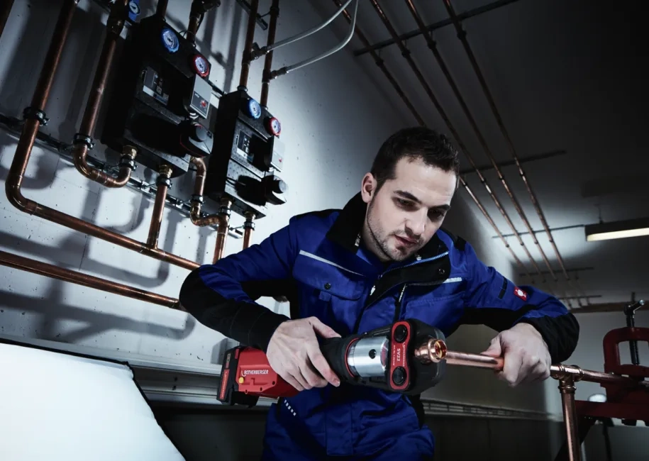 - Elektrohydrauliczna zaciskarka akumulatorowa do rur do Ø110 mm