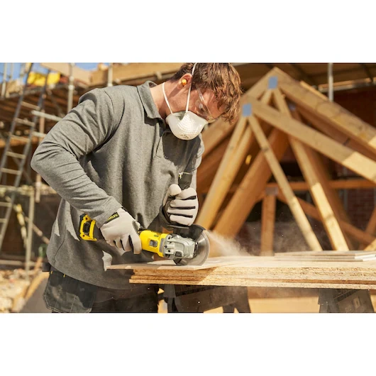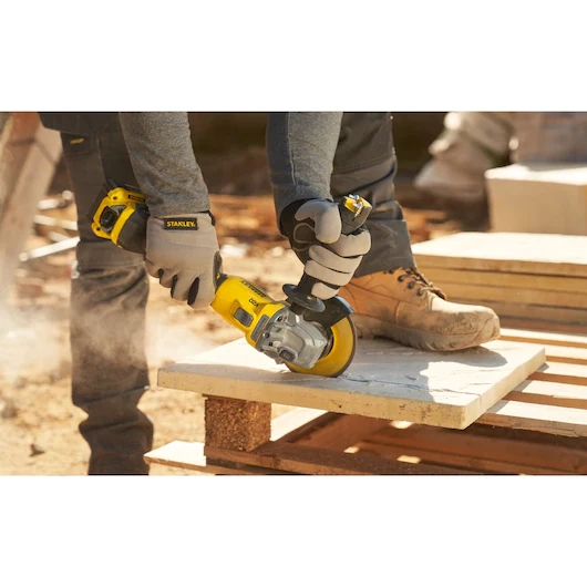 Szlifierka kątowa Stanley Fatmax SFMCG710M1T-QW to akumulatorowe narzędzie z serii V20 Li-Ion, zaprojektowane do intensywnych prac cięcia i szlifowania. Wyposażona w bezszczotkowy silnik, zapewnia wysoką efektywność, dłuższy czas pracy i mniejsze wymagania serwisowe w porównaniu z klasycznymi jednostkami szczotkowymi. Prędkość obrotowa 8 500 obr./min i tarcza o średnicy 125 mm pozwalają na sprawne cięcie metalu, płytek czy obróbkę powierzchni. Ergonomiczna konstrukcja z gumowanym uchwytem oraz dodatkową rękojeścią z możliwością montażu w trzech pozycjach zwiększa kontrolę i komfort użytkowania. Zestaw obejmuje akumulator 4,0 Ah, ładowarkę oraz walizkę systemową PRO-STACK.