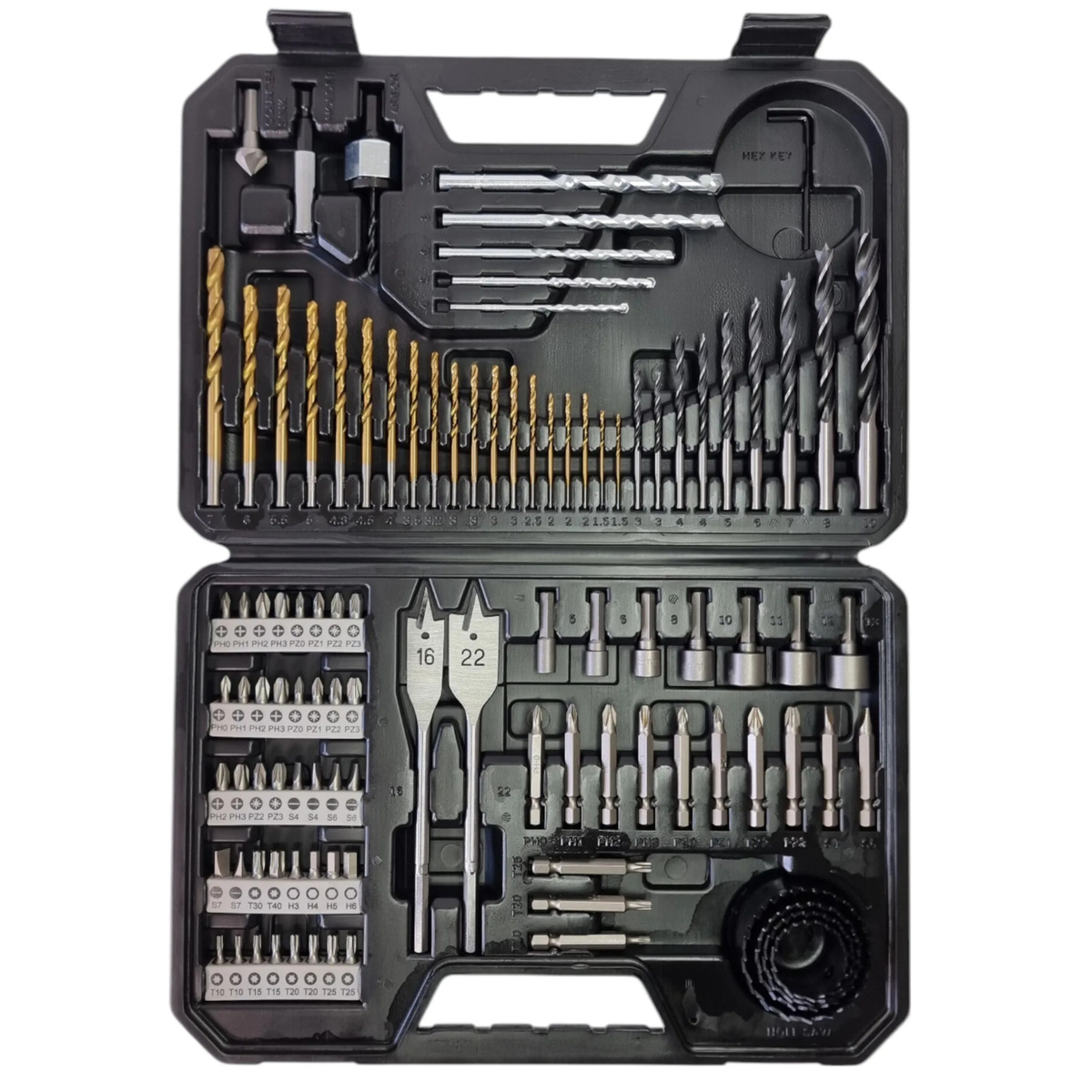 Zestaw wierteł i bitów 103 szt. Bosch 2607017367 to wszechstronne narzędzie, idealne do niemal każdego projektu – do wiercenia i mocowania w drewnie, metalu i kamieniu. Wiertła do metalu wyposażone są w powłokę Titanium-Nitrid, która zapewnia długą żywotność, wysoką wytrzymałość oraz możliwość szybkiego i czystego wiercenia w metalach, plexi i twardych tworzywach sztucznych (nie nadaje się do aluminium). Dzięki powłoce Titan Nitrid wiercenie jest nawet o 40% szybsze, a przy profesjonalnym chłodzeniu żywotność wierteł może być 6 razy dłuższa. W zestawie znajduje się 19 wierteł do metalu o średnicach 2–7 mm.