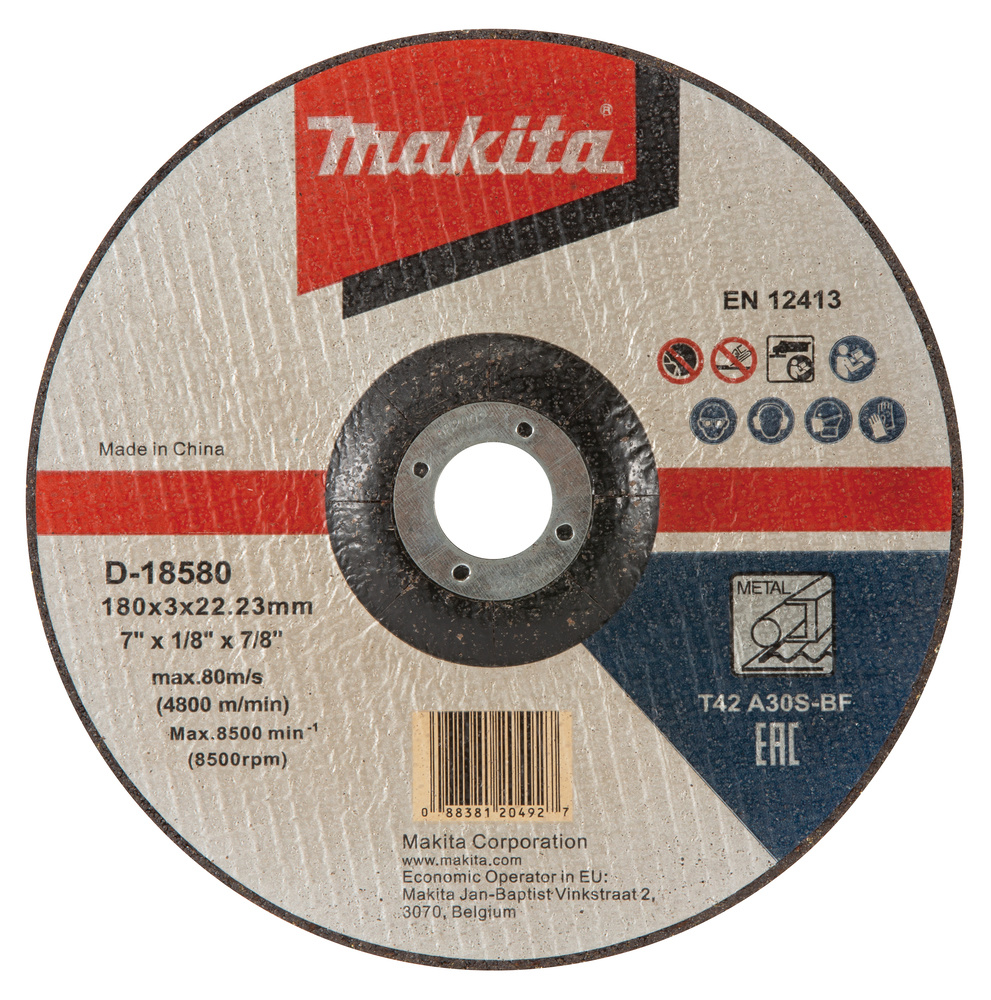Tarcza tnąca Makita 180x3x22,23mm A30S D-18580 to wysokiej jakości akcesorium przeznaczone do szlifierek kątowych. Wykonana z wytrzymałego materiału ściernego o ziarnistości A30S, zapewnia precyzyjne i szybkie cięcie metalu. Tarcza tnąca sprawdzi się zarówno w zastosowaniach warsztatowych, jak i profesjonalnych.