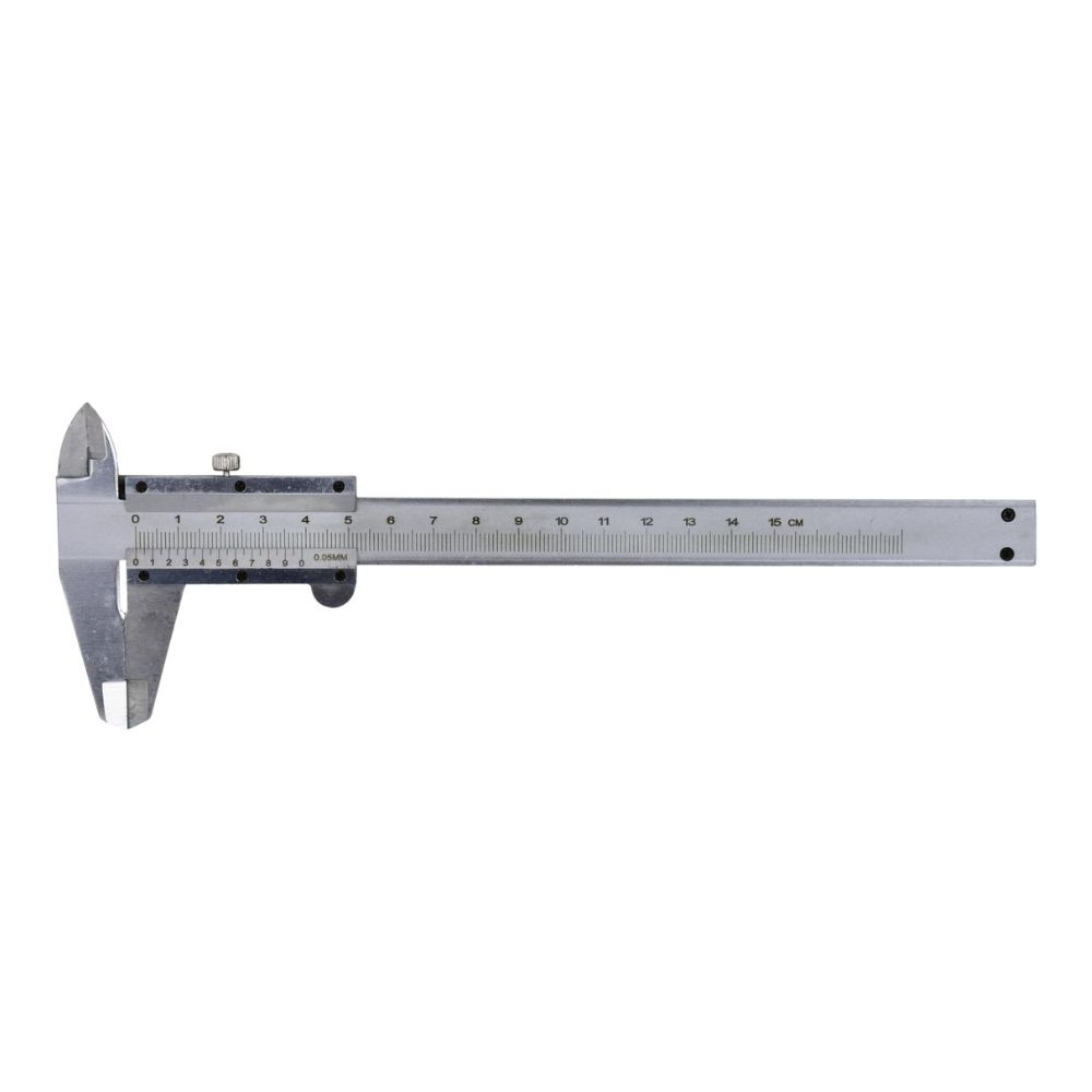 Wyposażona jest w szczęki umożliwiające dokonywanie pomiarów zewnętrznych i wewnętrznych oraz stalowy, ocynkowany pręt pełniący funkcję głębokościomierza. Blokowanie suwaka odbywa się od góry za pomocą śruby, co zapewnia stabilność podczas pomiaru. Suwmiarka umożliwia dokładny odczyt w zakresie od 0 do 150 mm z precyzją 0,05 mm, co czyni ją niezawodnym narzędziem przy wymagających pomiarach. Ergonomiczna konstrukcja i solidne wykonanie zapewniają wygodę oraz długą żywotność narzędzia.