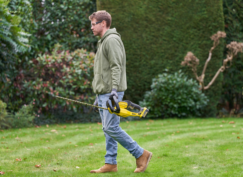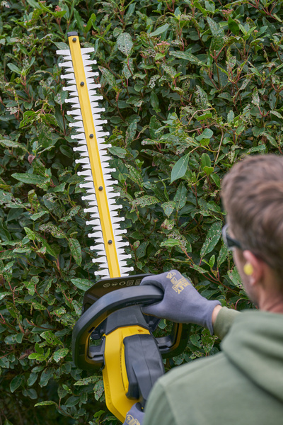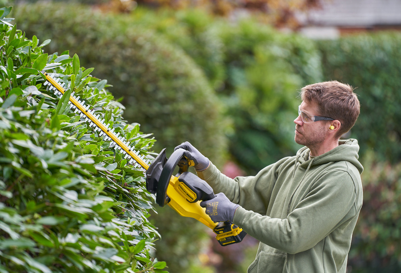 Nożyce do żywopłotu Stanley Fatmax SFMCHT655M1-QW to bezprzewodowe narzędzie ogrodowe z zasilaniem akumulatorowym - stworzone z myślą o efektywnym i precyzyjnym przycinaniu żywopłotów oraz krzewów. Dzięki zastosowaniu technologii akumulatorowej V20, urządzenie oferuje dłuższy czas pracy oraz większą niezawodność, eliminując efekt pamięci i samorozładowanie. Dwustronne, laserowo cięte ostrze o długości 55 cm wykonano z hartowanej stali, co przekłada się na wysoką trwałość, skuteczne cięcie i zmniejszone wibracje. Nożyce umożliwiają cięcie nawet grubszych gałęzi dzięki końcówkom tnącym z funkcją piłowania.