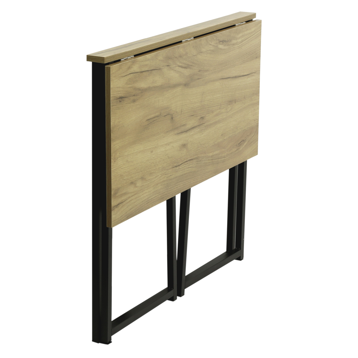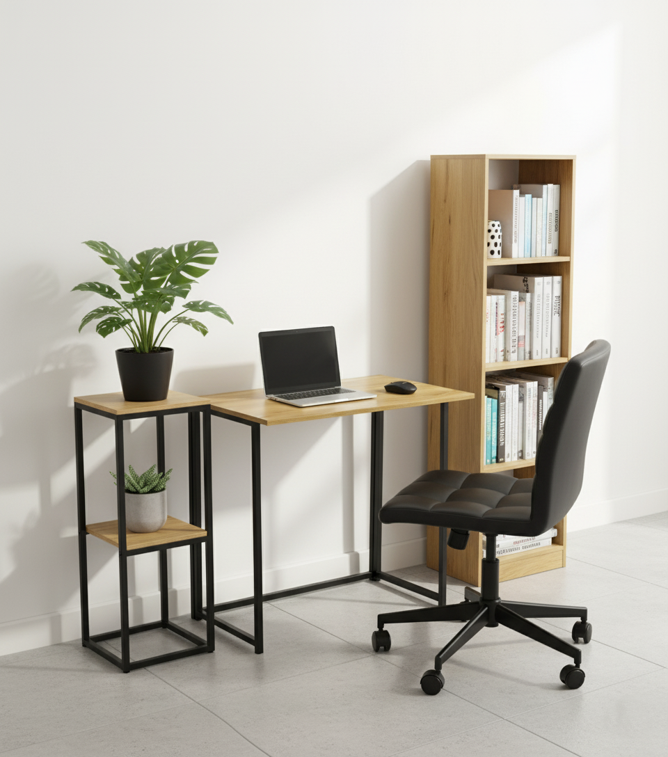 Stelaż wykonano z lekkiej stali malowanej proszkowo na czarno (mat). To gwarancja trwałości, elegancji i nowoczesnego wyglądu. Dzięki składanej konstrukcji biurko można w kilka sekund złożyć i schować – świetne rozwiązanie do niewielkich mieszkań czy home office.