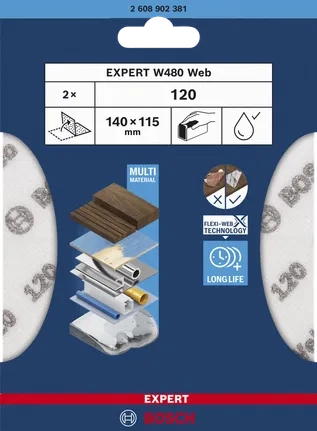 Zestaw 2 szt. arkuszy do szlifowania ręcznego Bosch EXPERT W480 Web 1/4, 115x140 mm, G120 2608902381