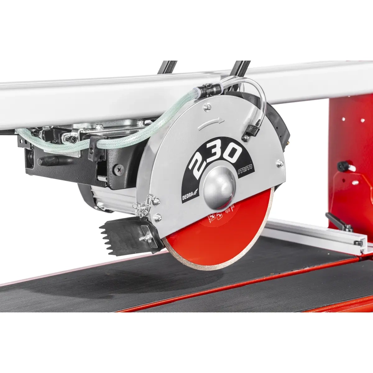 Przecinarka do glazury Dedra DED7818 to profesjonalne urządzenie przeznaczone do cięcia i obróbki płytek ceramicznych, gresu oraz innych materiałów wykończeniowych. Wyposażona w silnik o mocy 1200 W i tarczę o średnicy 230 mm, zapewnia dużą wydajność oraz precyzję pracy. Dzięki przesuwnej głowicy możliwe jest wykonywanie cięć wzdłużnych, poprzecznych, po przekątnej, a także ukosowania krawędzi. Zastosowany system chłodzenia wodą ogranicza pylenie i wydłuża żywotność tarczy tnącej, a dodatkowa guma zabezpieczająca chroni przed rozpryskami wody. Stabilny blat roboczy z możliwością powiększenia powierzchni ułatwia pracę z dużymi formatami płytek, a laser prowadzący dodatkowo wspiera precyzyjne cięcie. Składane nogi oraz kółka transportowe sprawiają, że urządzenie jest wygodne w przenoszeniu i przechowywaniu.
