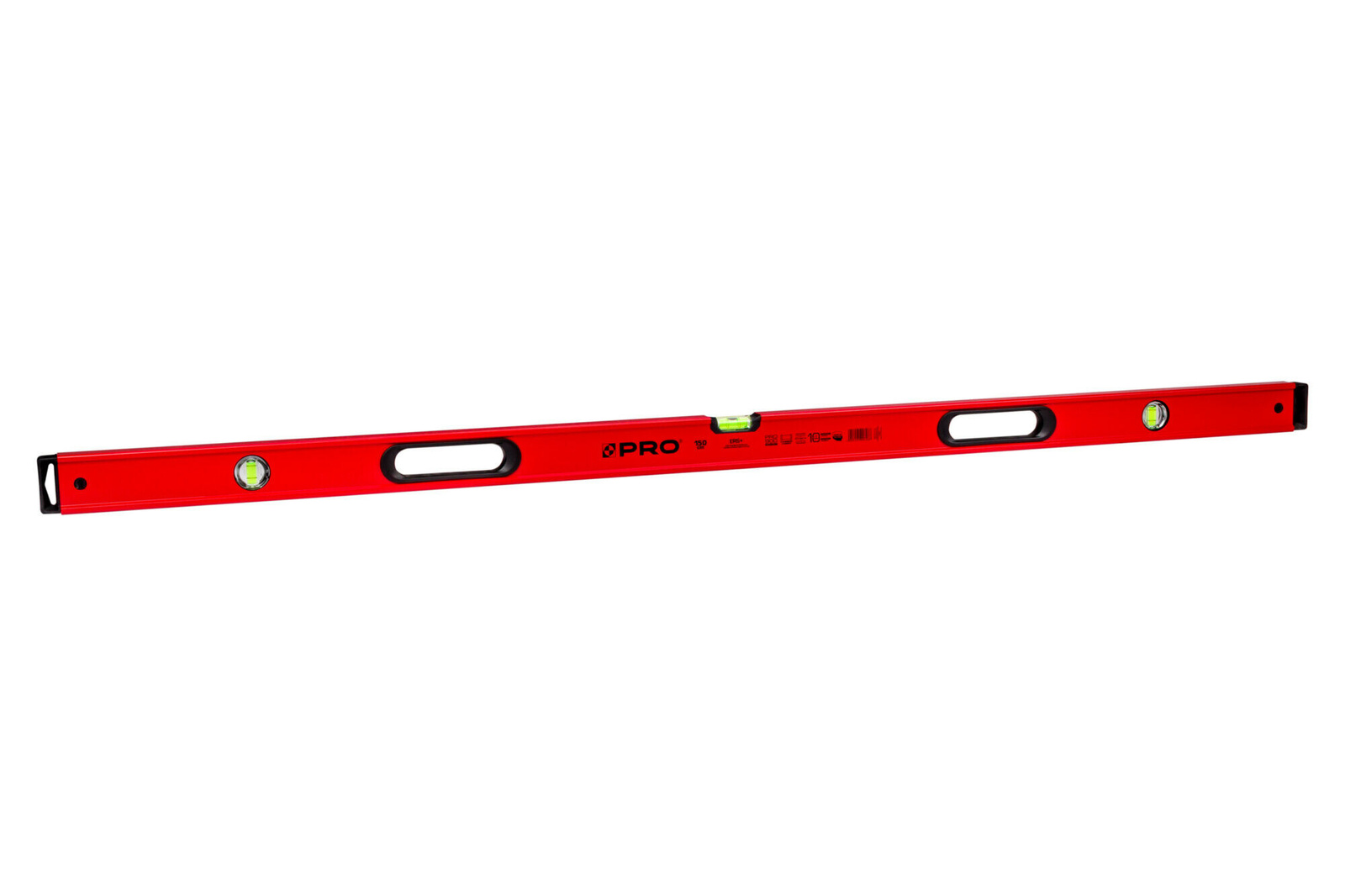 Poziomica 180 cm PRO-D4180 to profesjonalne narzędzie pomiarowe zaprojektowane z myślą o precyzji i trwałości. Solidna konstrukcja wykonana z wysokiej jakości aluminium gwarantuje odporność na uszkodzenia oraz długą żywotność nawet przy intensywnym użytkowaniu. Profil o wymiarach 61 × 27 mm zapewnia doskonałą stabilność podczas pracy, a czerwony kolor korpusu sprawia, że poziomica jest dobrze widoczna na każdym stanowisku roboczym. Dokładność pomiaru na poziomie 0,5 mm/m pozwala uzyskać precyzyjne wyniki zarówno przy pomiarach poziomych, jak i pionowych.