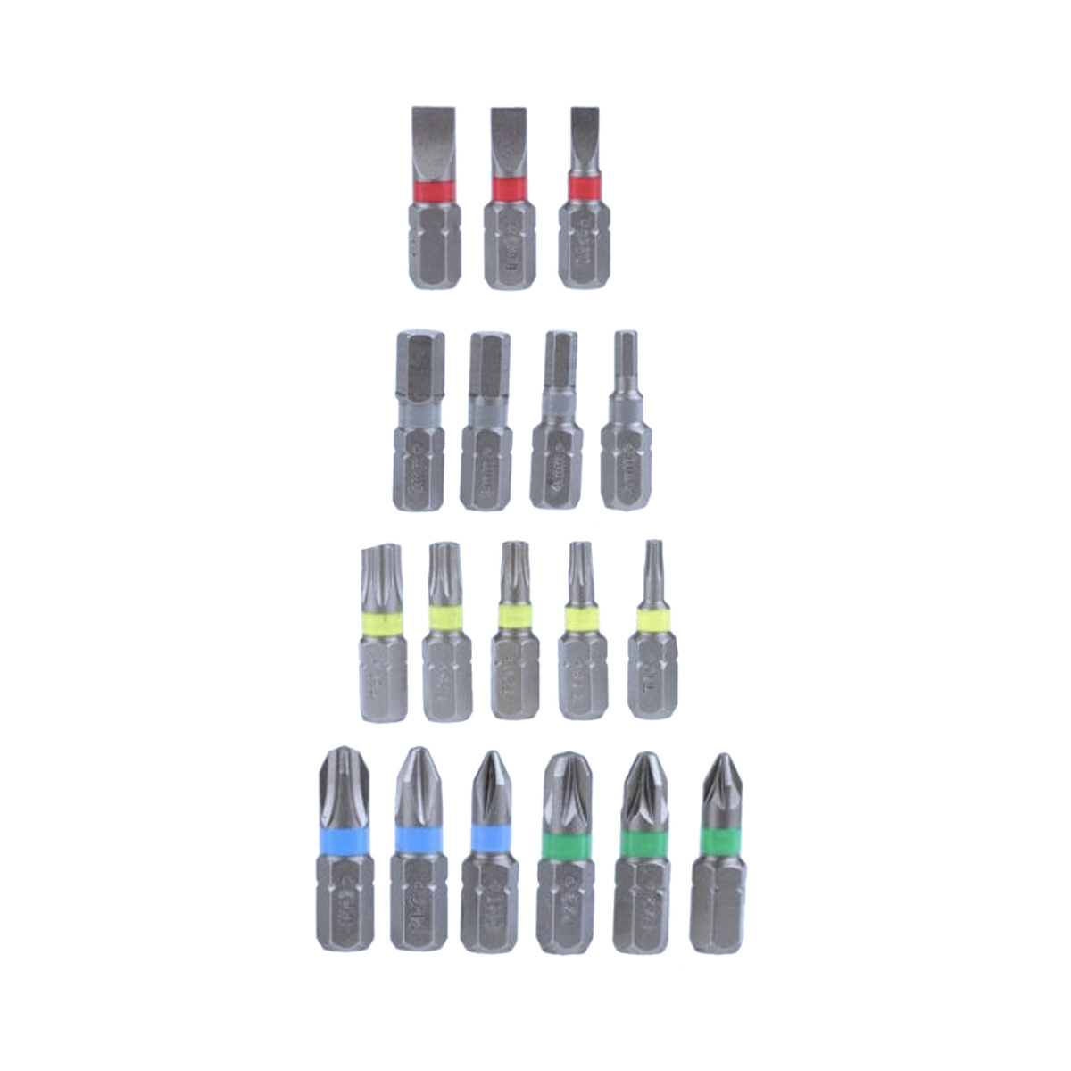 - 18 × końcówki wkręcające z kodowaniem kolorystycznym: