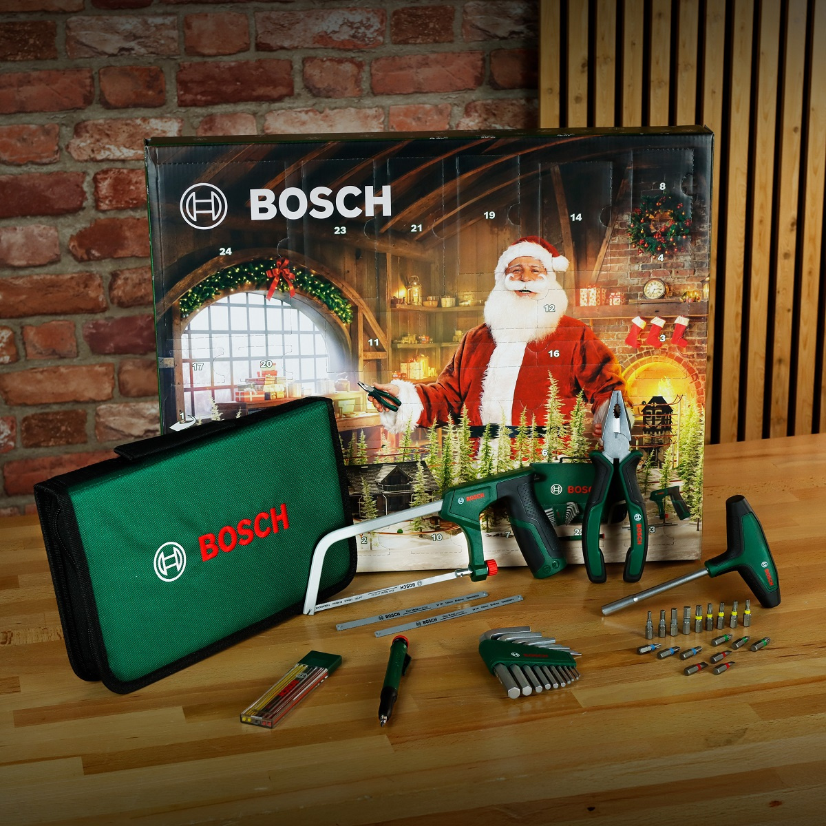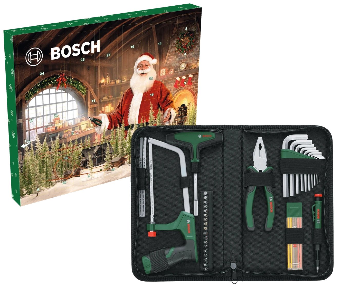 Pod stylowymi okienkami kalendarza kryją się narzędzia o wysokiej jakości wykonania, ergonomii i trwałości, z których słynie marka Bosch. Całość została zaprojektowana tak, by zestaw był w pełni funkcjonalny – przydatny w codziennych naprawach domowych, projektach DIY oraz w warsztacie. Już pierwszego dnia użytkownik otrzymuje praktyczną torbę na narzędzia, idealną do przechowywania i organizacji całej zawartości kalendarza.