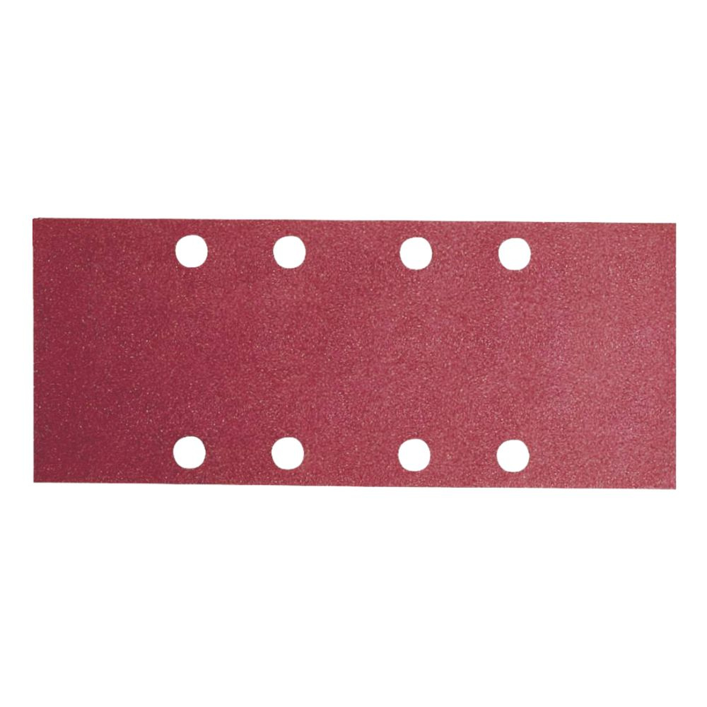 Zestaw obejmuje arkusze o różnych ziarnistościach: 4 x 60, 4 x 120 oraz 2 x 180, co pozwala na dopasowanie materiału ściernego do stopnia obróbki powierzchni. Arkusze posiadają 8 otworów, umożliwiających efektywne odsysanie pyłu podczas szlifowania.