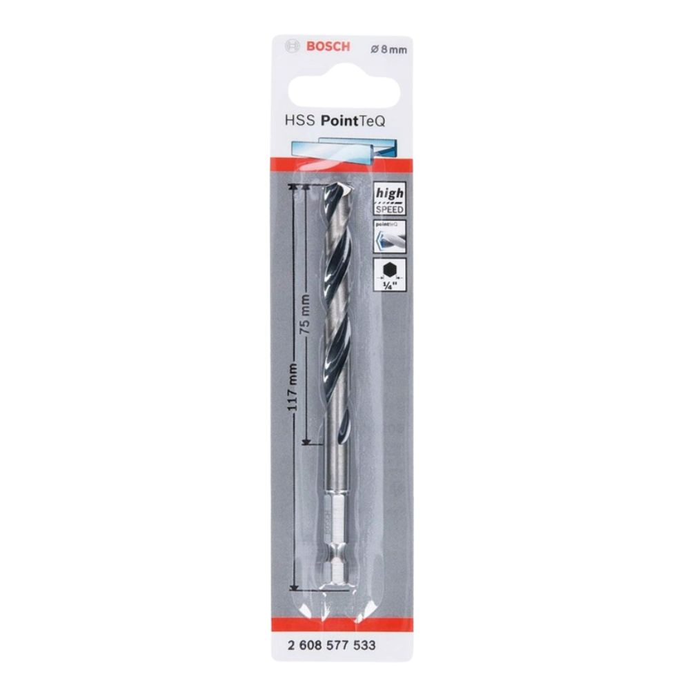 Wiertło do metalu HSS 8×75×117 mm Bosch 2608577533 to narzędzie stworzone do szybkiego i precyzyjnego wiercenia w różnych materiałach. Dzięki uniwersalnemu mocowaniu sześciokątnemu ¼" jest kompatybilne ze wkrętarkami i wkrętarkami udarowymi wszystkich marek, co zapewnia wygodę i wszechstronność użytkowania. Przeznaczone jest do wiercenia w metalu, w tym w blachach, aluminium i stali miękkiej, a także w tworzywach sztucznych i drewnie. Specjalna samocentrująca końcówka PointTeQ umożliwia szybkie i łatwe nawiercanie bez konieczności wcześniejszego punktowania, co zwiększa wydajność pracy i precyzję otworów.