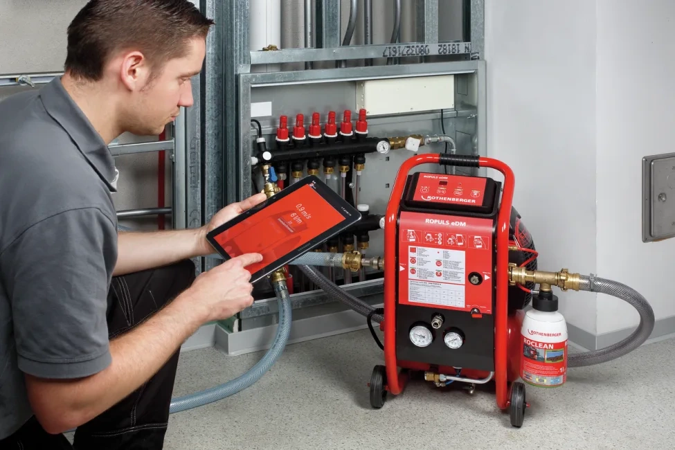 Sprężarka płucząca Rothenberger ROPULS eDM (1000002825) to kompaktowa sprężarka do płukania i czyszczenia instalacji: usuwa kamień i osady z obiegów grzewczych, umożliwia płukanie rur wody pitnej zgodnie z DIN 1988-2 / EN 806-4, a także dezynfekcję (z chemią ROPULS/ROCLEAN). Oferuje dwa tryby pracy – pulsacyjny oraz ciągły – dzięki czemu dopasujesz urządzenie do rodzaju instalacji i stopnia zabrudzenia. Intuicyjny panel upraszcza obsługę, a aplikacja mobilna (Android/iOS) generuje profesjonalne protokoły płukania w PDF z danymi zlecenia i nagłówkiem firmy. Zestaw obejmuje wtryskiwacz ROCLEAN, reduktor 2 bar oraz chemię do ogrzewania podłogowego (6×), dzięki czemu od razu wykonasz płukanie hydrodynamiczne lub chemiczne.