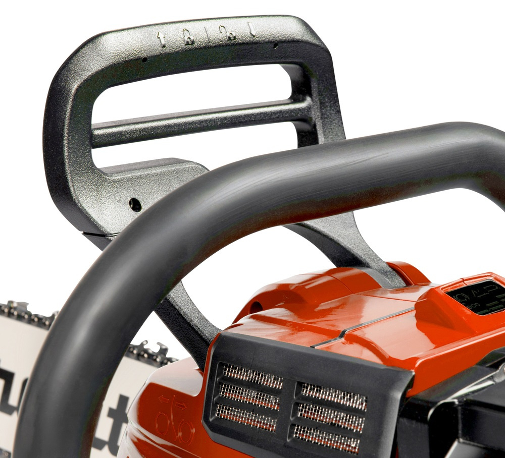 Wygodę obsługi zapewniają włącznik spustowy z regulacją prędkości obrotowej i elektroniczny panel kontrolny z trzema trybami pracy. Dzięki szybkiemu czasowi reakcji narzędzie niemal natychmiast reaguje na naciśnięcie spustu. Wbudowana lampka ostrzega użytkownika o niskim poziomie naładowania, przegrzaniu, przeciążeniu lub aktywacji hamulca. Obsługa łańcucha (wymiana i naciąg) odbywa się przy użyciu narzędzi.