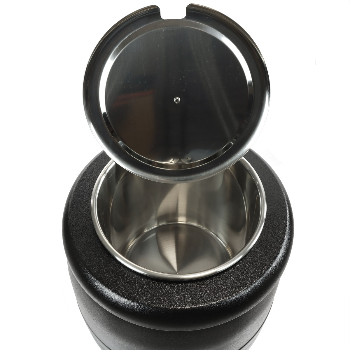 Solidna pokrywa zawiasowa z ergonomicznym uchwytem została zaprojektowana z myślą o komforcie użytkowania. Można ją otworzyć jedną ręką lub całkowicie zdjąć, co ułatwia napełnianie, mieszanie i czyszczenie. Wyprofilowana konstrukcja minimalizuje utratę ciepła i zapobiega kapaniu skroplin poza obudowę.