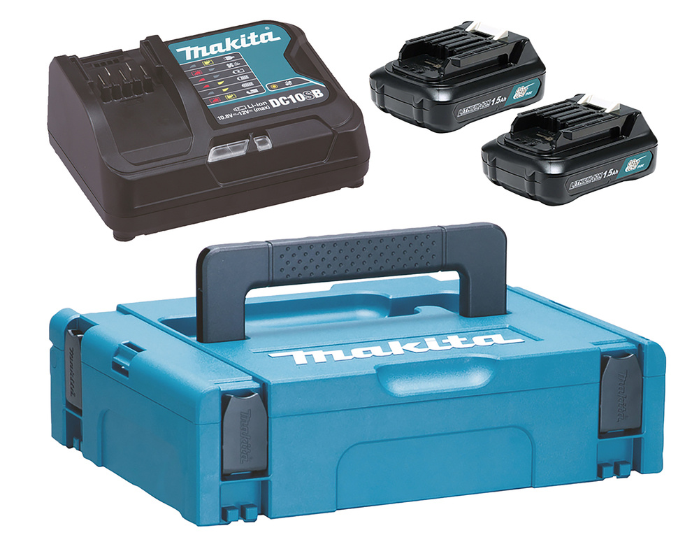 Zestaw zasilający Makita 197652-7 to praktyczne rozwiązanie dla użytkowników elektronarzędzi z serii CXT 12 Vmax. W jego skład wchodzą dwa kompaktowe akumulatory litowo-jonowe o pojemności 1,5 Ah, każdy wyposażony we wskaźnik poziomu naładowania, oraz szybka ładowarka DC10SB, zdolna do pełnego naładowania jednego akumulatora w zaledwie 22 minuty. Całość zapakowana jest w trwałą, systemową walizkę Makpac, która ułatwia przechowywanie i transport. Zestaw idealnie sprawdzi się jako źródło zasilania do mniejszych narzędzi akumulatorowych, oferując niezawodne działanie i szybki powrót do pracy.