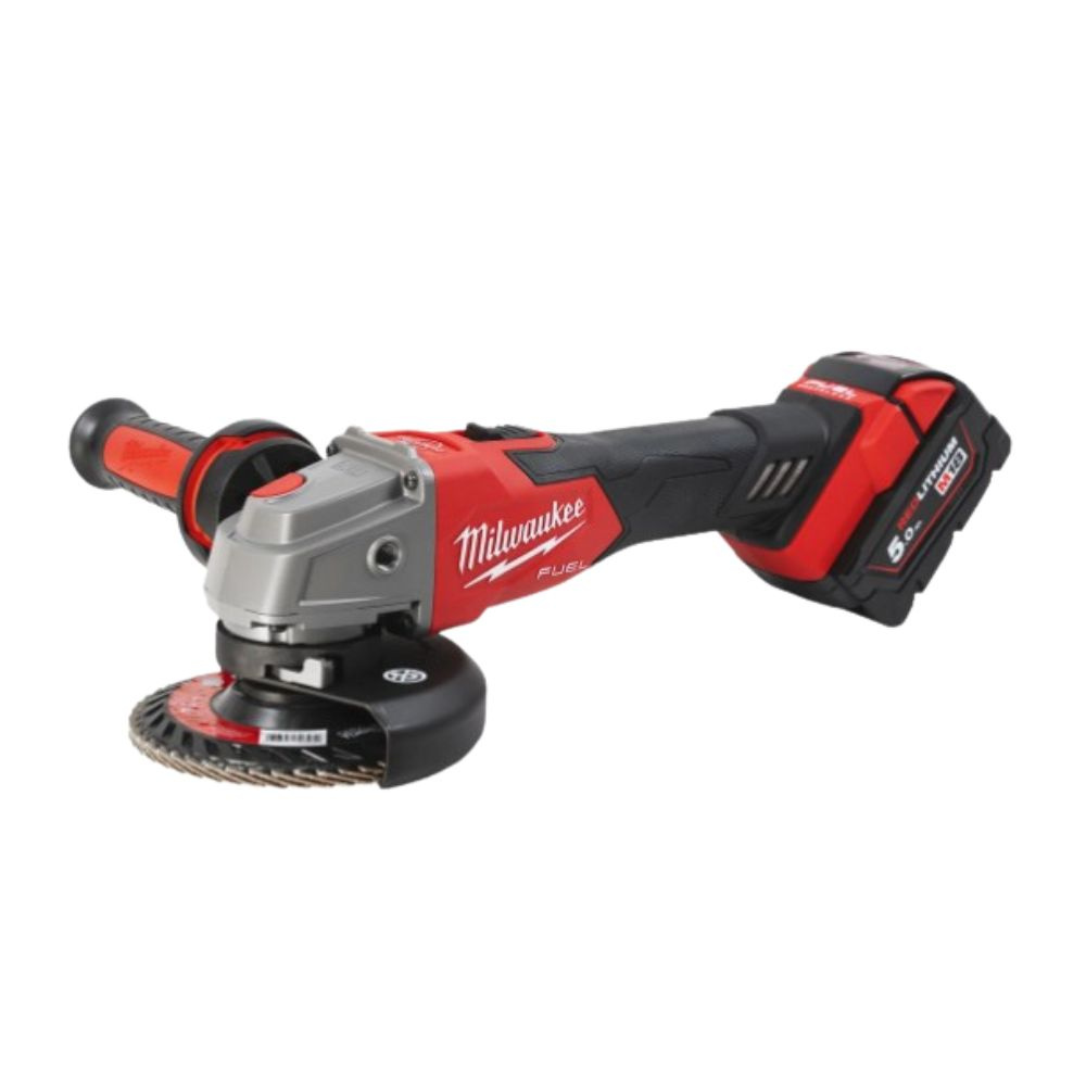 Szlifierka kątowa Milwaukee M18 FSAG125XB-502X oferuje wydajność porównywalną z szlifierką sieciową o mocy 1200 W, umożliwiając szybkie i skuteczne cięcie w różnych materiałach. System RAPIDSTOP™ zatrzymuje tarczę w mniej niż 2 sekundy, zwiększając bezpieczeństwo pracy i minimalizując ryzyko wypadków. Kompaktowa głowica i niższy kąt slotu podłączenia akumulatora poprawiają równowagę narzędzia, co przekłada się na lepszą ergonomię i komfort użytkowania.